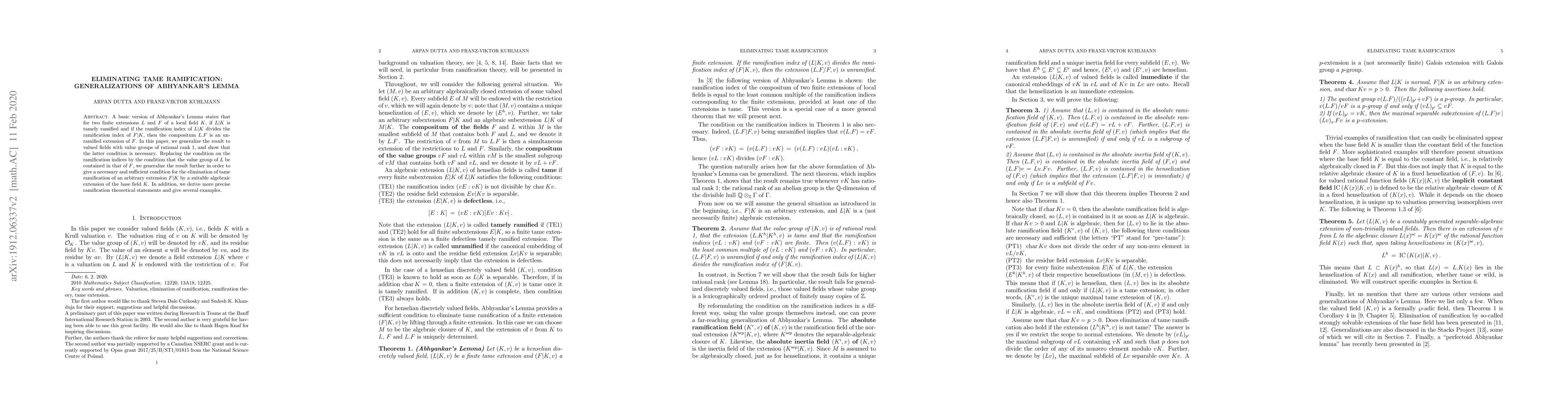 A basic version of Abhyankar's Lemma states that for two finite extensions $L$ and $F$ of a local field $K$, if $L|K$ is tamely ramified and if the ramification index of $L|K$ divides the ramification index of $F|K$, then the compositum $L.F$ is an unramified extension of $F$. In this paper, we generalize the result to valued fields with value groups of rational rank 1, and show that the latter condition is necessary. Replacing the condition on the ramification indices by the condition that the value group of $L$ be contained in that of $F$, we generalize the result further in order to give a necessary and sufficient condition for the elimination of tame ramification of an arbitrary extension $F|K$ by a suitable algebraic extension of the base field $K$. In addition, we derive more precise ramification theoretical statements and give several examples.