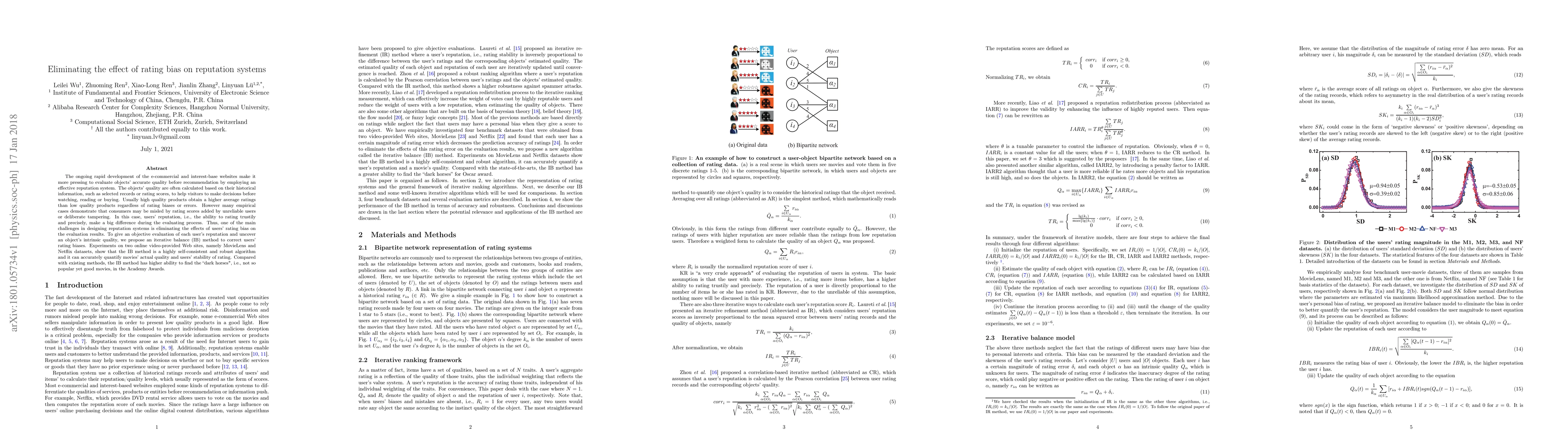 A new algorithm called Iterative Balance (IB) is proposed to eliminate rating bias in reputation systems, accurately evaluating object quality on e-commerce websites.