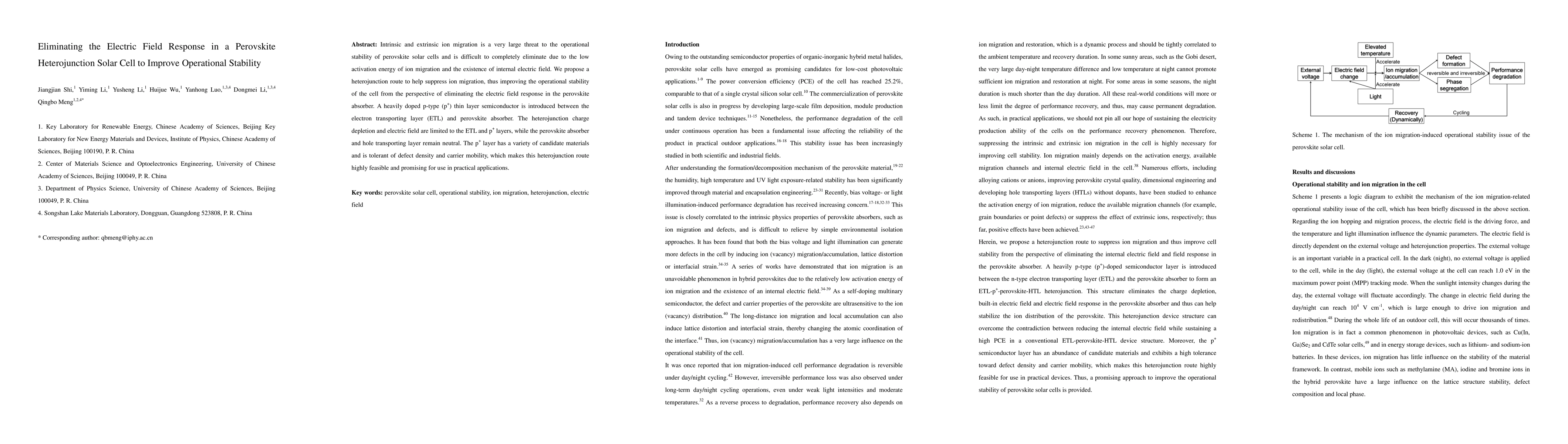 Researchers propose a new design for perovskite solar cells that eliminates the electric field response to improve operational stability. By introducing a heavily doped p-type layer between the electron transporting layer and perovskite absorber, they reduce ion migration and enhance the cell's performance.