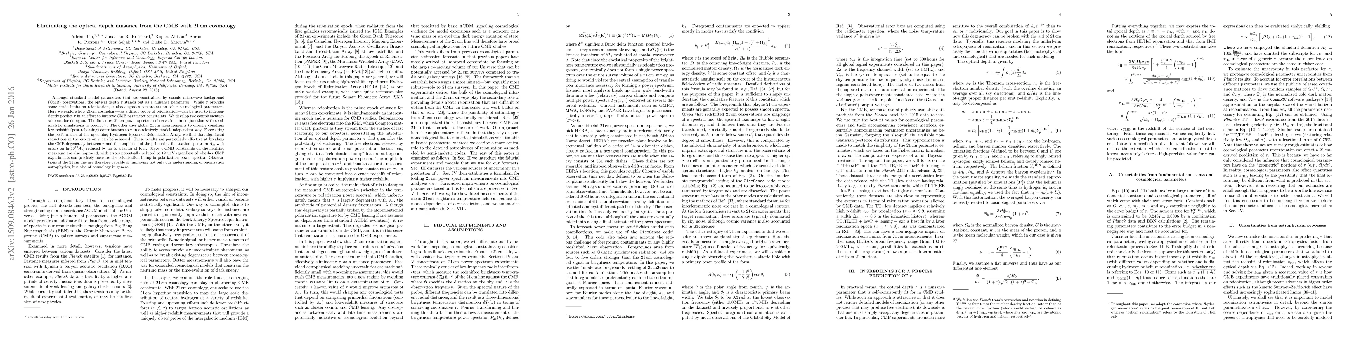 Amongst standard model parameters that are constrained by cosmic microwave background (CMB) observations, the optical depth $\tau$ stands out as a nuisance parameter. While $\tau$ provides some crude limits on reionization, it also degrades constraints on other cosmological parameters. Here we explore how 21 cm cosmology---as a direct probe of reionization---can be used to independently predict $\tau$ in an effort to improve CMB parameter constraints. We develop two complementary schemes for doing so. The first uses 21 cm power spectrum observations in conjunction with semi-analytic simulations to predict $\tau$. The other uses global 21 cm measurements to directly constrain low redshift (post-reheating) contributions to $\tau$ in a relatively model-independent way. Forecasting the performance of the upcoming Hydrogen Epoch of Reionization Array, we find that significant reductions in the errors on $\tau$ can be achieved. These results are particularly effective at breaking the CMB degeneracy between $\tau$ and the amplitude of the primordial fluctuation spectrum $A_s$, with errors on $\ln (10^{10} A_s)$ reduced by up to a factor of four. Stage 4 CMB constraints on the neutrino mass sum are also improved, with errors potentially reduced to $12\,\textrm{meV}$ regardless of whether CMB experiments can precisely measure the reionization bump in polarization power spectra. Observations of the 21 cm line are therefore capable of improving not only our understanding of reionization astrophysics, but also of cosmology in general.
