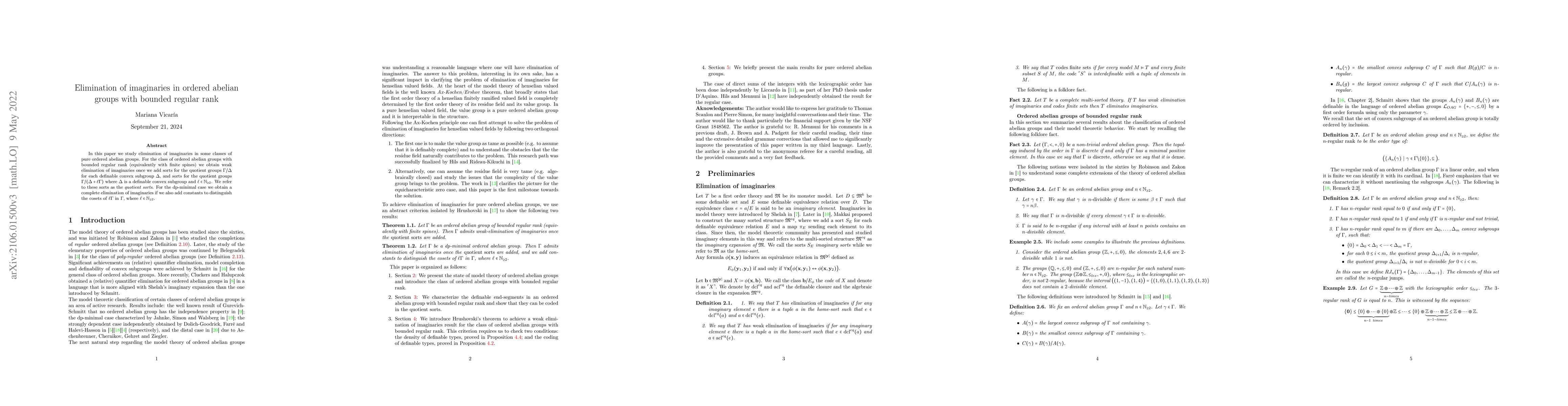This paper investigates elimination of imaginaries in ordered abelian groups with bounded regular rank. It achieves weak elimination of imaginaries by introducing quotient sorts for certain quotient groups, and obtains complete elimination in the dp-minimal case by adding constants to distinguish finite group elements.