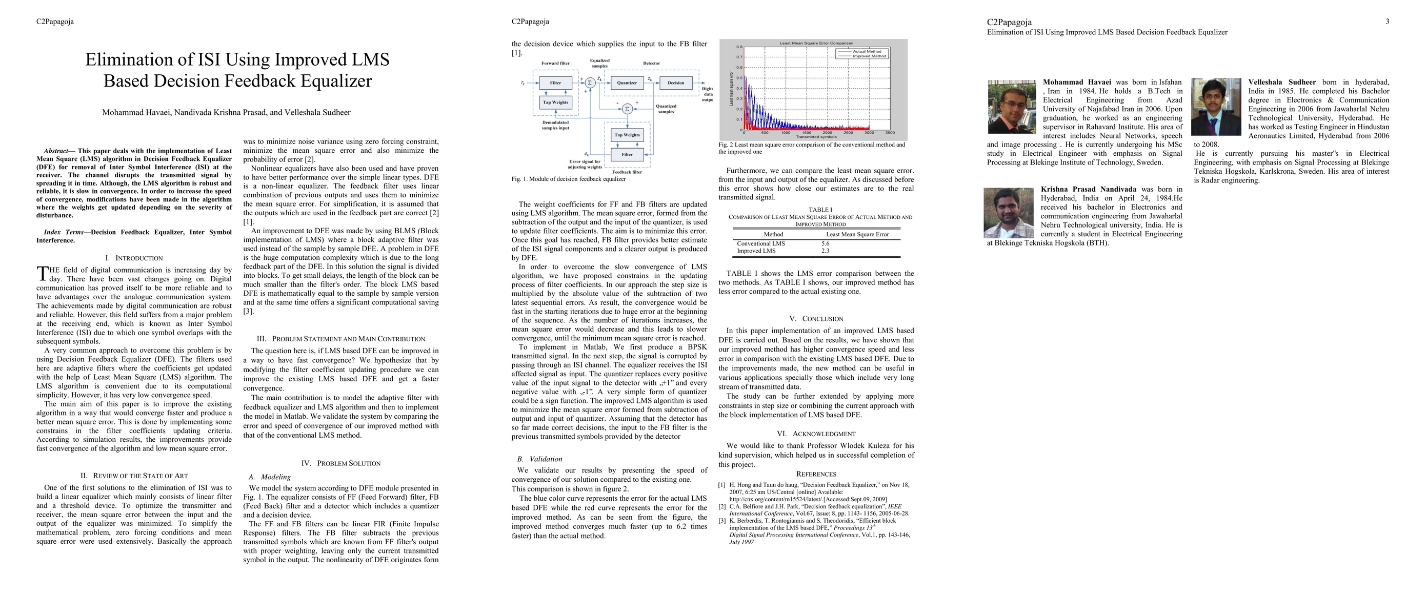 This paper uses an improved LMS algorithm in a Decision Feedback Equalizer to quickly remove Inter Symbol Interference (ISI) from received signals, increasing the speed of convergence.
