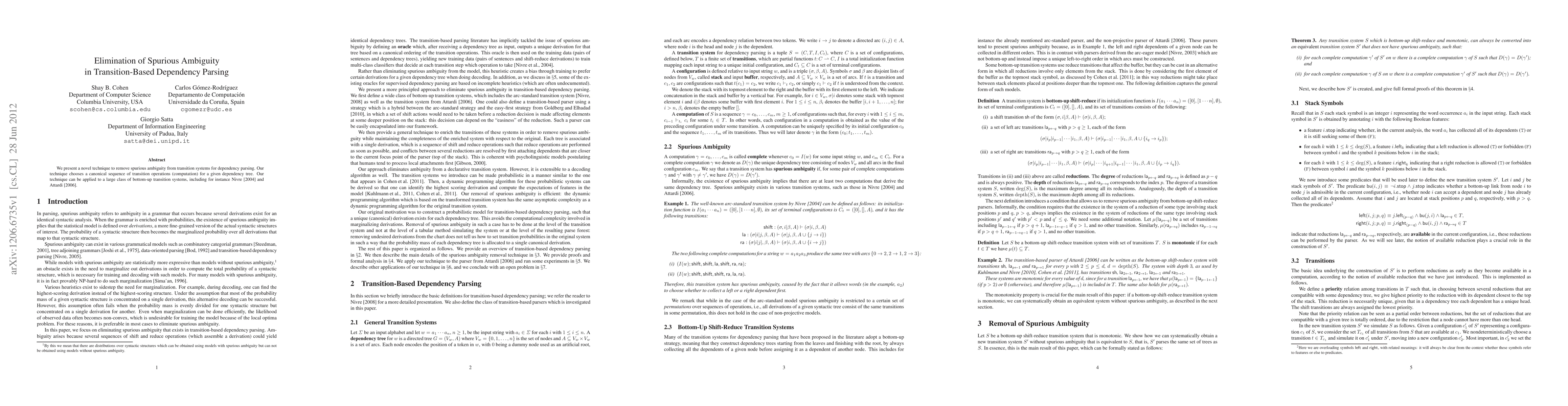 This paper introduces a method to eliminate spurious ambiguity in transition-based dependency parsing by selecting a canonical sequence of transition operations. The technique is applicable to various bottom-up transition systems, enhancing parsing accuracy.
