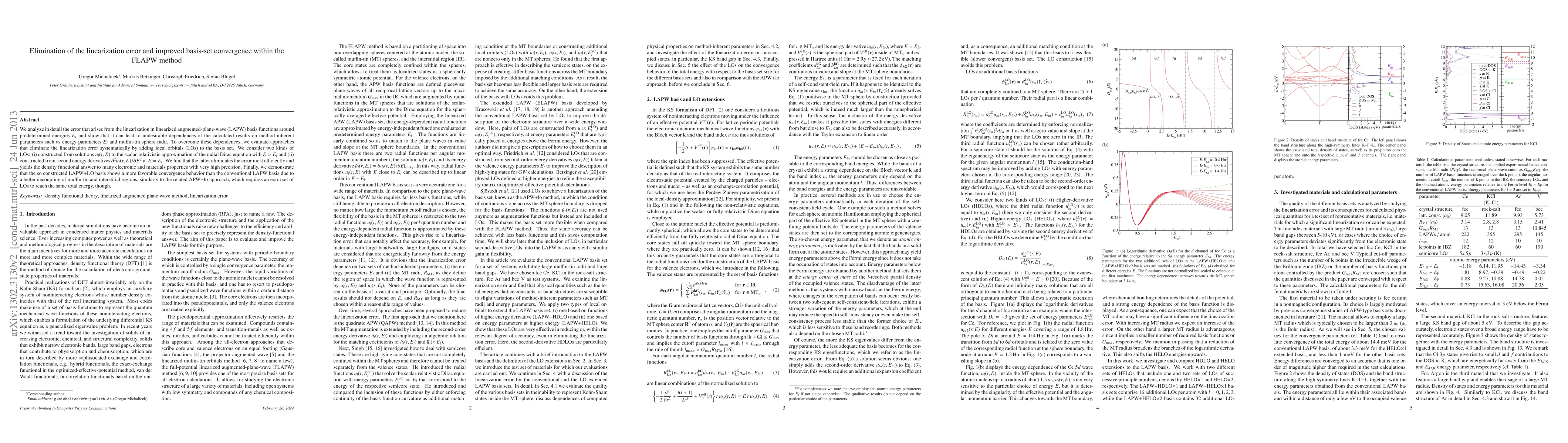 This paper addresses the linearization error in LAPW methods, proposing the addition of local orbitals (LOs) to improve basis-set convergence. The study finds that LOs derived from second energy derivatives at specific energies most effectively eliminate the error, leading to high-precision results and better convergence compared to conventional LAPW methods.