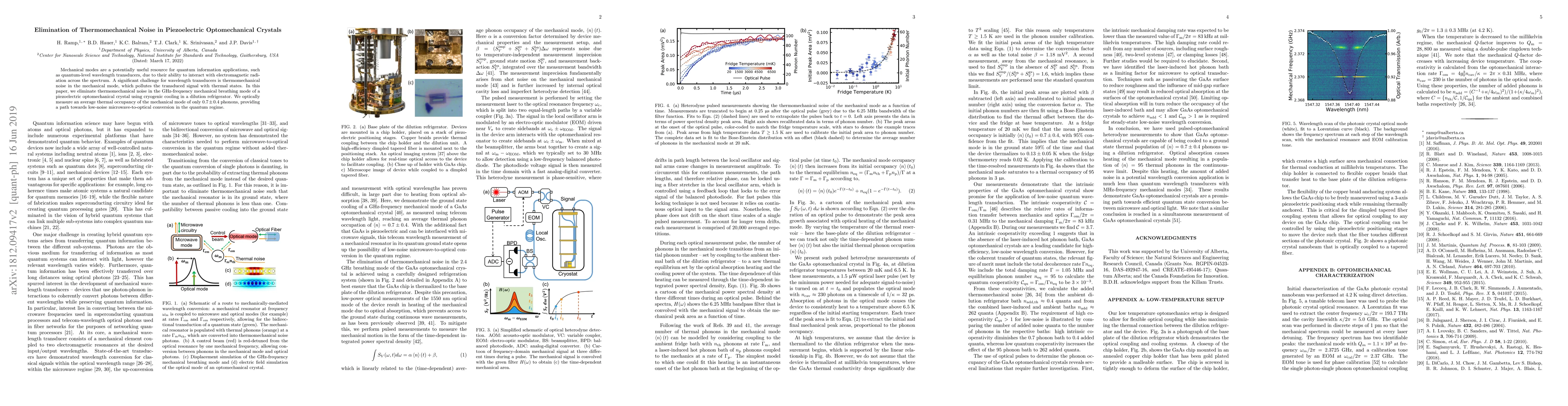 This research eliminates thermomechanical noise in a piezoelectric optomechanical crystal's GHz mechanical breathing mode using cryogenic cooling. The method achieved an average thermal occupancy of just 0.7±0.4 phonons, paving the way for low-noise microwave-to-optical conversion in the quantum regime.