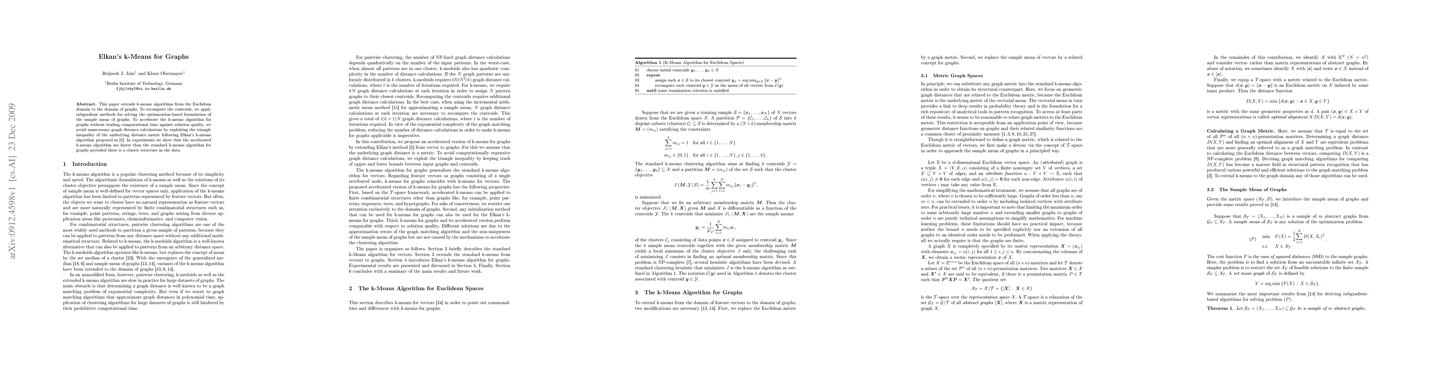 This paper extends k-means algorithms from the Euclidean domain to the domain of graphs. To recompute the centroids, we apply subgradient methods for solving the optimization-based formulation of the sample mean of graphs. To accelerate the k-means algorithm for graphs without trading computational time against solution quality, we avoid unnecessary graph distance calculations by exploiting the triangle inequality of the underlying distance metric following Elkan's k-means algorithm proposed in \cite{Elkan03}. In experiments we show that the accelerated k-means algorithm are faster than the standard k-means algorithm for graphs provided there is a cluster structure in the data.