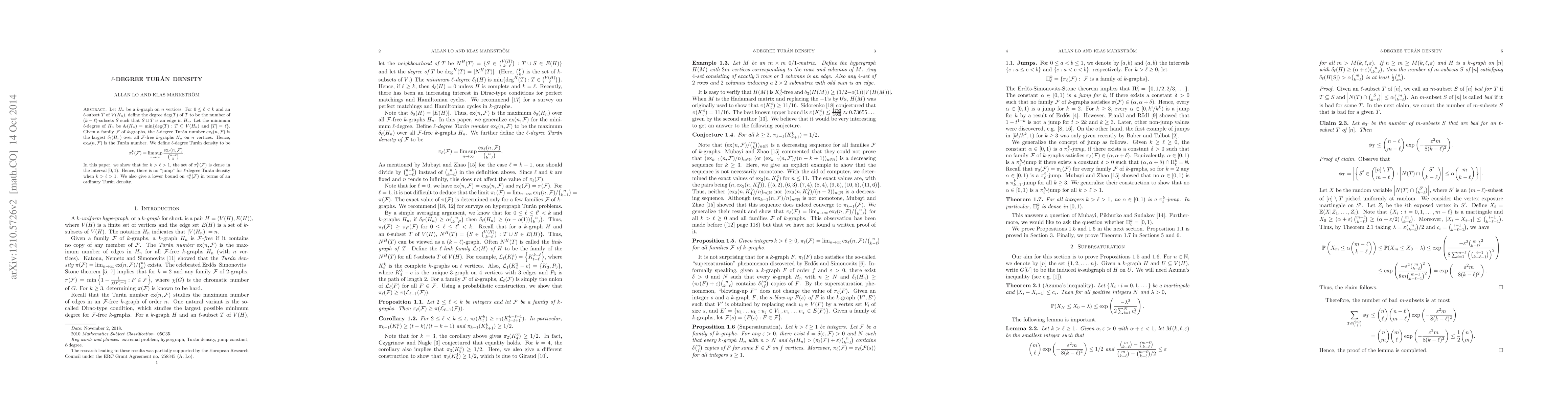 This paper explores the $\ell$-degree Tur\'an density for $k$-graphs, showing that for $k > \ell > 1$, the set of $\ell$-degree Tur\'an densities is dense in $[0,1)$, implying no "jump" in density when $k > \ell > 1$. It also provides a lower bound for $\ell$-degree Tur\'an density in terms of ordinary Tur\'an density.