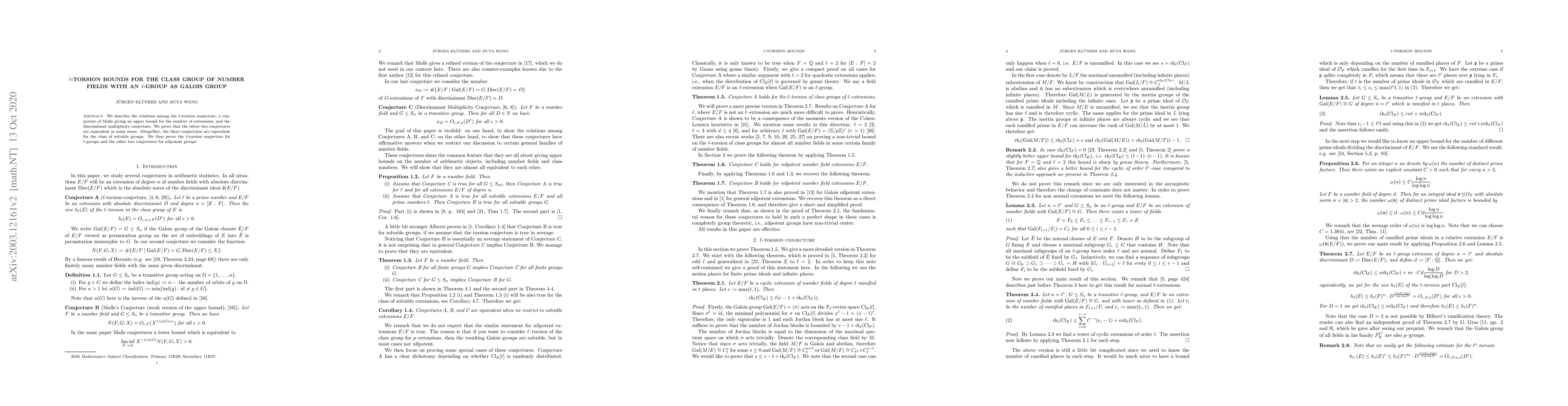 Summary: The paper establishes equivalences among the $\ell$-torsion conjecture, Malle's extension count conjecture, and the discriminant multiplicity conjecture, proving their equivalence for solvable groups and solving the $\ell$-torsion conjecture for $\ell$-groups, along with the other two for nilpotent groups.