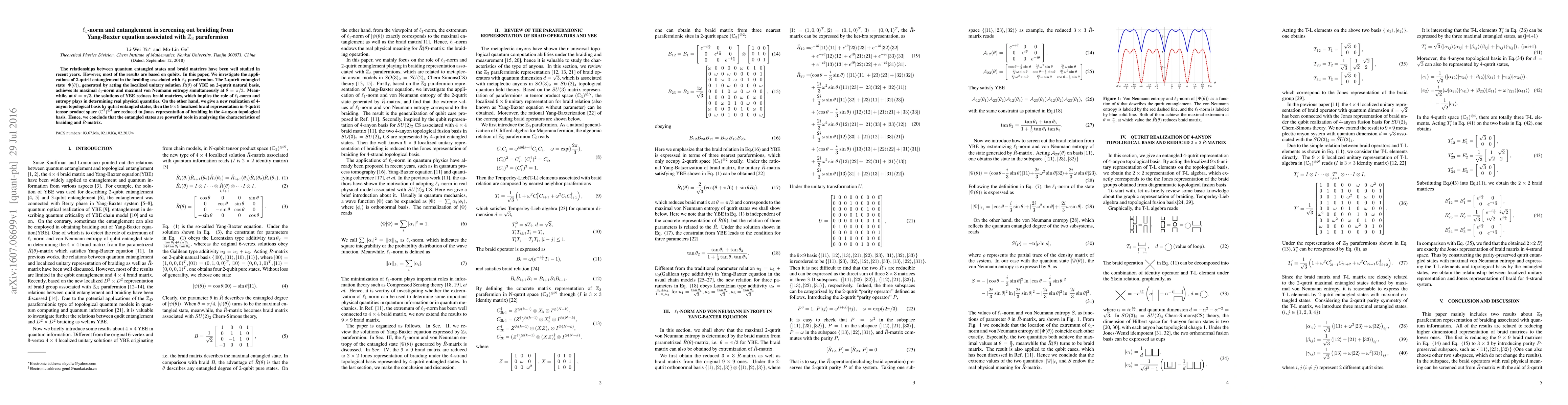 The relationships between quantum entangled states and braid matrices have been well studied in recent years. However, most of the results are based on qubits. In this paper, We investigate the applications of 2-qutrit entanglement in the braiding associated with $\mathbb{Z}_3$ parafermion. The 2-qutrit entangled state $|\Psi(\theta)\rangle$, generated by acting the localized unitary solution $\breve{R}(\theta)$ of YBE on 2-qutrit natural basis, achieves its maximal $\ell_1$-norm and maximal von Neumann entropy simultaneously at $\theta=\pi/3$. Meanwhile, at $\theta=\pi/3$, the solutions of YBE reduces braid matrices, which implies the role of $\ell_1$-norm and entropy plays in determining real physical quantities. On the other hand, we give a new realization of 4-anyon topological basis by qutrit entangled states, then the $9\times9$ localized braid representation in 4-qutrit tensor product space $(\mathbb{C}^3)^{\otimes 4}$ are reduced to Jones representation of braiding in the 4-anyon topological basis. Hence, we conclude that the entangled states are powerful tools in analysing the characteristics of braiding and $\breve{R}$-matrix.