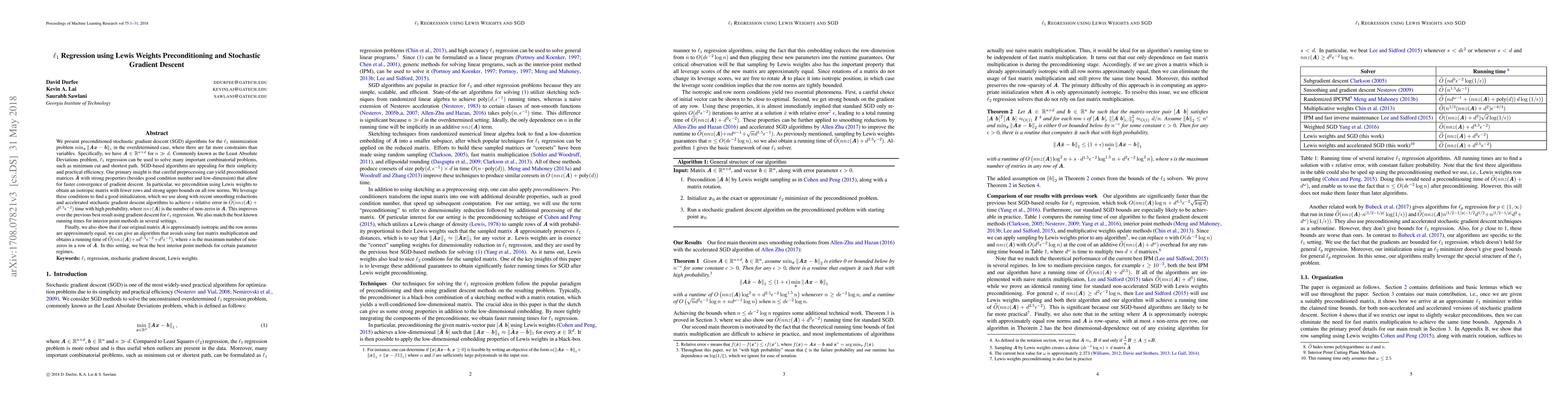 The paper presents preconditioned stochastic gradient descent (SGD) algorithms for $\ell_1$ minimization problem, utilizing Lewis weights preconditioning to achieve faster convergence.