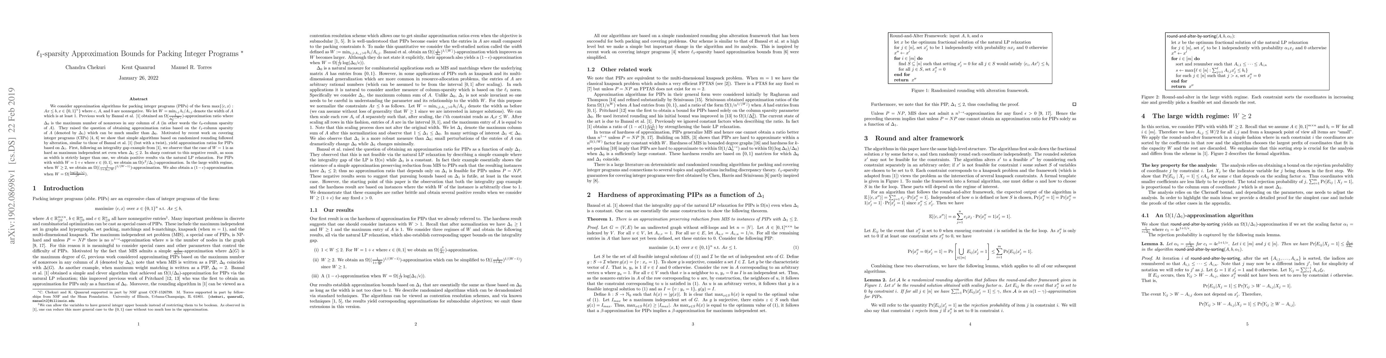This paper investigates approximation algorithms for packing integer programs (PIPs) and establishes new approximation ratios based on the $\ell_1$-column sparsity $\Delta_1$. For PIPs with width $W = 1 + \epsilon$, it provides an $\Omega(\epsilon^2/\Delta_1)$-approximation, and for larger widths $W \ge 2$, an $\Omega((\frac{1}{1 + \Delta_1/W})^{1/(W-1)})$-approximation is achieved.
