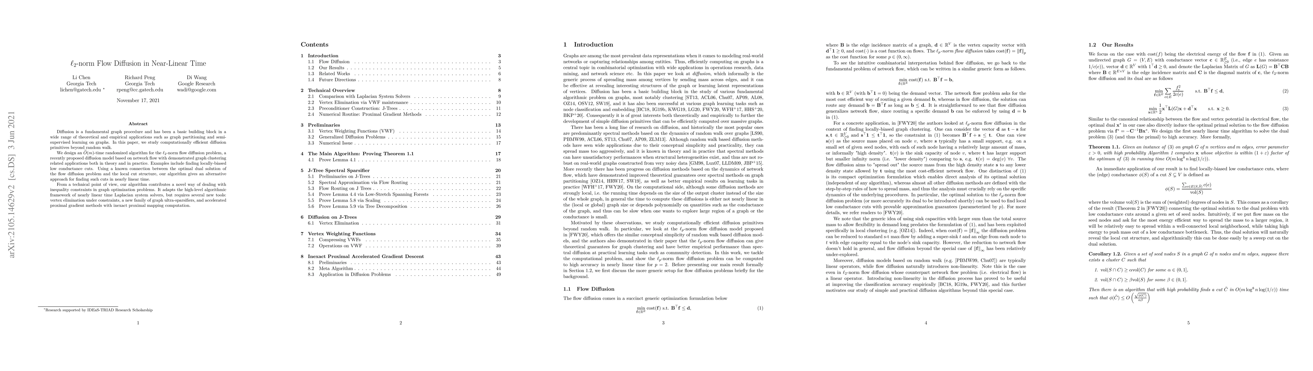 Diffusion is a fundamental graph procedure and has been a basic building block in a wide range of theoretical and empirical applications such as graph partitioning and semi-supervised learning on graphs. In this paper, we study computationally efficient diffusion primitives beyond random walk. We design an $\widetilde{O}(m)$-time randomized algorithm for the $\ell_2$-norm flow diffusion problem, a recently proposed diffusion model based on network flow with demonstrated graph clustering related applications both in theory and in practice. Examples include finding locally-biased low conductance cuts. Using a known connection between the optimal dual solution of the flow diffusion problem and the local cut structure, our algorithm gives an alternative approach for finding such cuts in nearly linear time. From a technical point of view, our algorithm contributes a novel way of dealing with inequality constraints in graph optimization problems. It adapts the high-level algorithmic framework of nearly linear time Laplacian system solvers, but requires several new tools: vertex elimination under constraints, a new family of graph ultra-sparsifiers, and accelerated proximal gradient methods with inexact proximal mapping computation.