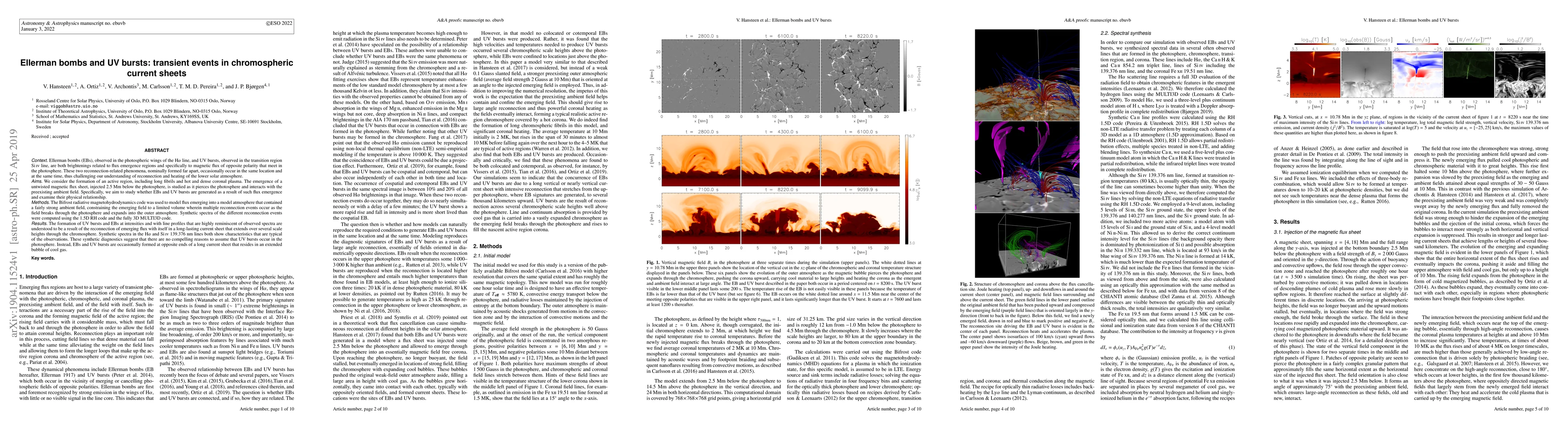 This research uses the Bifrost code to model magnetic flux emergence, revealing that Ellerman bombs and UV bursts originate from reconnection within a long-lasting current sheet in the chromosphere, challenging previous assumptions about their formation locations.
