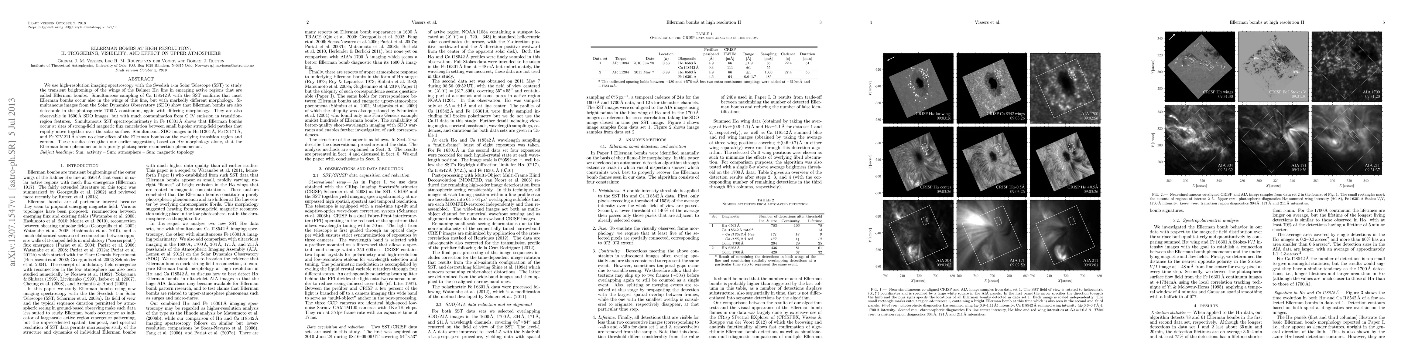 We use high-resolution imaging spectroscopy with the Swedish 1-m Solar Telescope (SST) to study the transient brightenings of the wings of the Balmer Halpha line in emerging active regions that are called Ellerman bombs. Simultaneous sampling of Ca II 854.2 nm with the SST confirms that most Ellerman bombs occur also in the wings of this line, but with markedly different morphology. Simultaneous images from the Solar Dynamics Observatory (SDO) show that Ellerman bombs are also detectable in the photospheric 170 nm continuum, again with differing morphology. They are also observable in 160 nm SDO images, but with much contamination from C IV emission in transition-region features. Simultaneous SST spectropolarimetry in Fe I 630.1 nm shows that Ellerman bombs occur at sites of strong-field magnetic flux cancelation between small bipolar strong-field patches that rapidly move together over the solar surface. Simultaneous SDO images in He II 30.4 nm, Fe IX 17.1 nm, and Fe XIV 21.1 nm show no clear effect of the Ellerman bombs on the overlying transition region and corona. These results strengthen our earlier suggestion, based on Halpha morphology alone, that the Ellerman bomb phenomenon is a purely photospheric reconnection phenomenon.