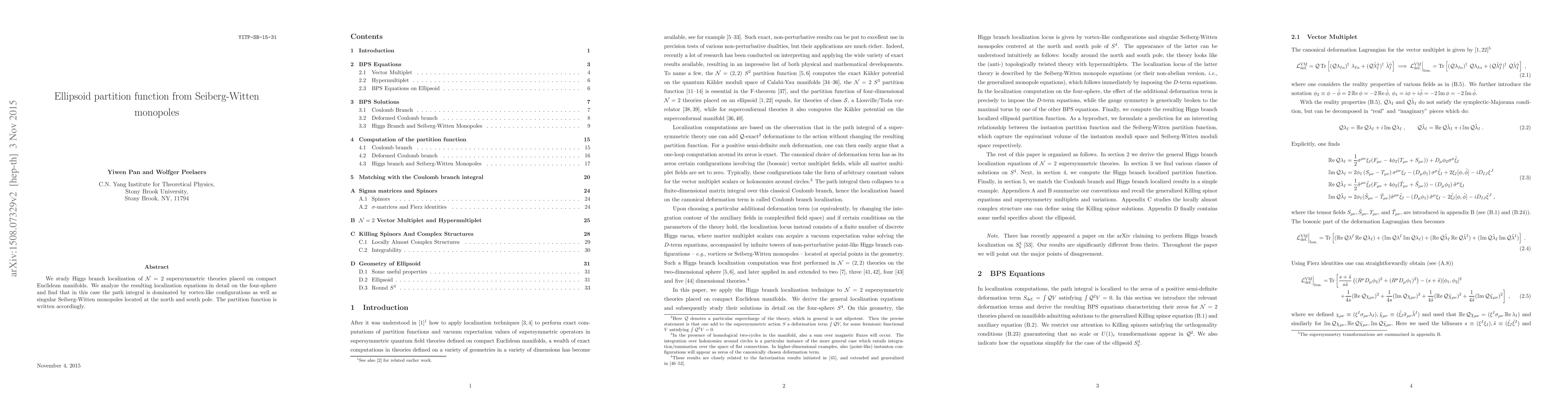 This research explores the Higgs branch localization of N=2 supersymmetric theories on compact Euclidean manifolds, specifically on the four-sphere, revealing that the path integral is dominated by vortex-like configurations and singular Seiberg-Witten monopoles at the poles, leading to a specific partition function formulation.