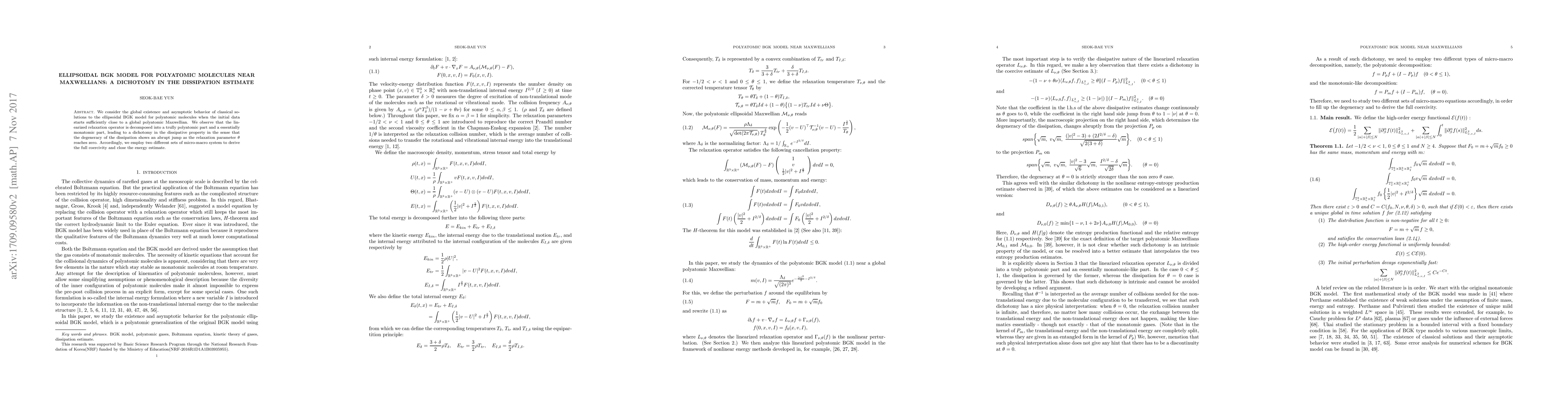 This paper investigates the ellipsoidal BGK model for polyatomic molecules, revealing a dichotomy in the dissipation estimate due to the decomposition of the linearized relaxation operator into polyatomic and monatomic parts. The study demonstrates an abrupt jump in dissipation as the relaxation parameter approaches zero, leading to distinct micro-macro systems for deriving full coercivity and closing the energy estimate.