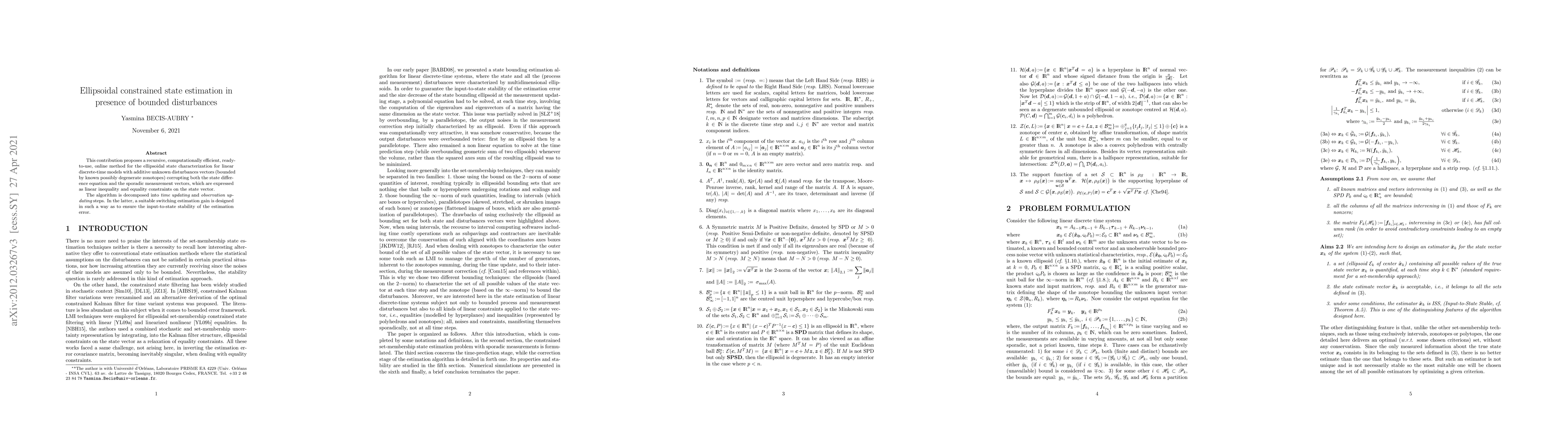 This contribution proposes a recursive, computationally efficient, ready-to-use, online method for the ellipsoidal state characterization for linear discrete-time models with additive unknown disturbances vectors (bounded by known possibly degenerate zonotopes) corrupting both the state difference equation and the sporadic measurement vectors, which are expressed as linear inequality and equality constraints on the state vector. The algorithm is decomposed into time updating and observation updating steps. In the latter, a suitable switching estimation gain is designed in such a way as to ensure the input-to-state stability of the estimation error.