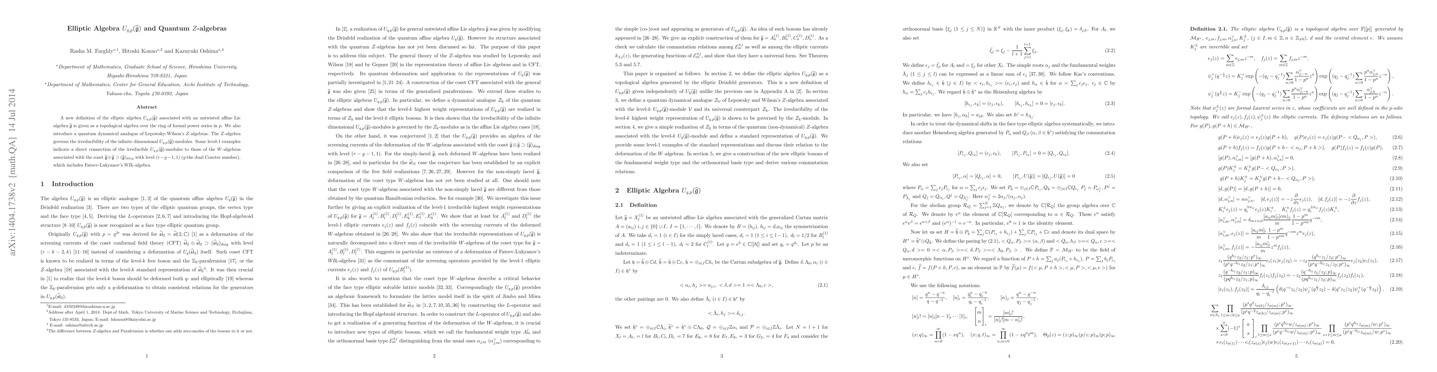 This paper defines the elliptic algebra U_{q,p}(g^) linked to an untwisted affine Lie algebra g^ as a topological algebra. It also introduces a quantum Z-algebra variant, which ensures the irreducibility of infinite-dimensional U_{q,p}(g^)-modules and connects these modules to those of W-algebras.