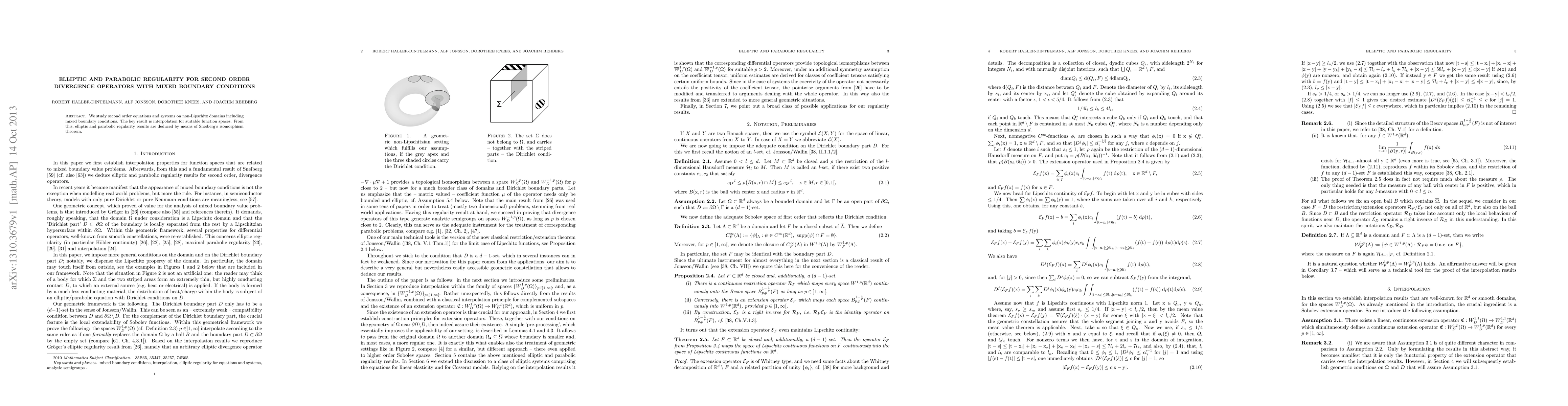 This paper investigates second-order divergence equations and systems on non-Lipschitz domains with mixed boundary conditions, proving interpolation for appropriate function spaces, which leads to elliptic and parabolic regularity results via Sneiberg's isomorphism theorem.