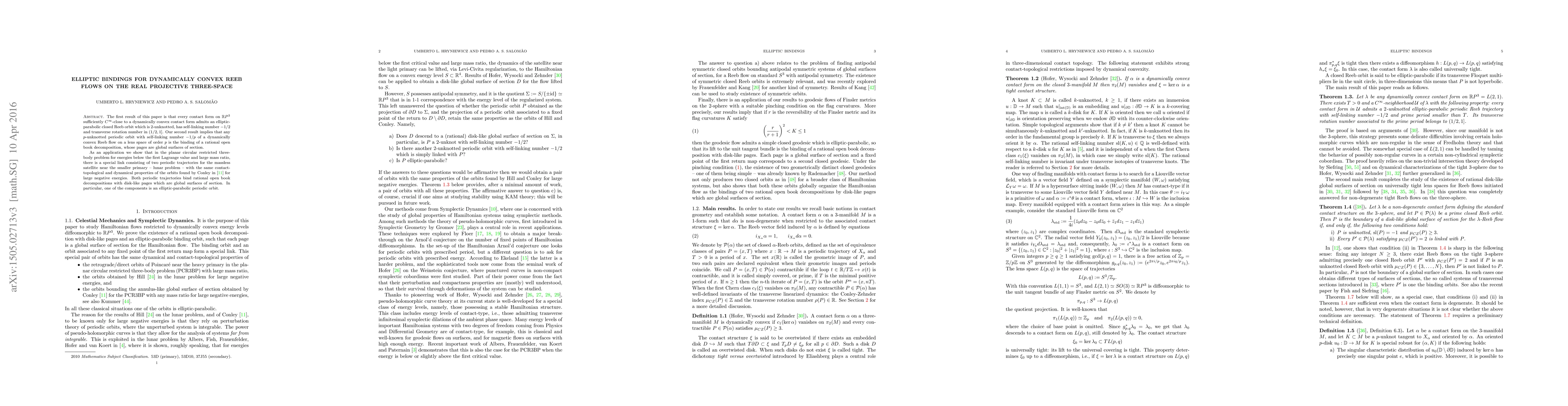 The first result of this paper is that every contact form on $\mathbb{R} P^3$ sufficiently $C^\infty$-close to a dynamically convex contact form admits an elliptic-parabolic closed Reeb orbit which is $2$-unknotted, has self-linking number $-1/2$ and transverse rotation number in $(1/2,1]$. Our second result implies that any $p$-unknotted periodic orbit with self-linking number $-1/p$ of a dynamically convex Reeb flow on a lens space of order $p$ is the binding of a rational open book decomposition, whose pages are global surfaces of section. As an application we show that in the planar circular restricted three-body problem for energies below the first Lagrange value and large mass ratio, there is a special link consisting of two periodic trajectories for the massless satellite near the smaller primary -- lunar problem -- with the same contact-topological and dynamical properties of the orbits found by Conley in~\cite{conley} for large negative energies. Both periodic trajectories bind rational open book decompositions with disk-like pages which are global surfaces of section. In particular, one of the components is an elliptic-parabolic periodic orbit.