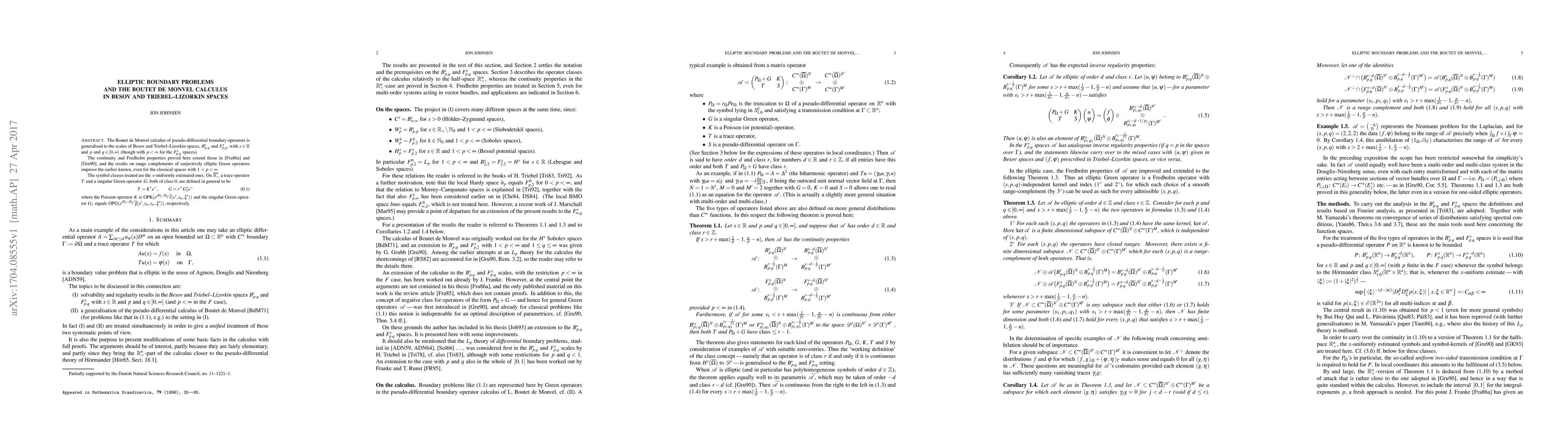 This paper extends the Boutet de Monvel calculus for pseudo-differential boundary operators to Besov and Triebel-Lizorkin spaces, improving on previous continuity and Fredholm properties, and providing enhanced results for range complements of elliptic Green operators. The focus is on uniformly estimated symbol classes and precise definitions of trace and singular Green operators.