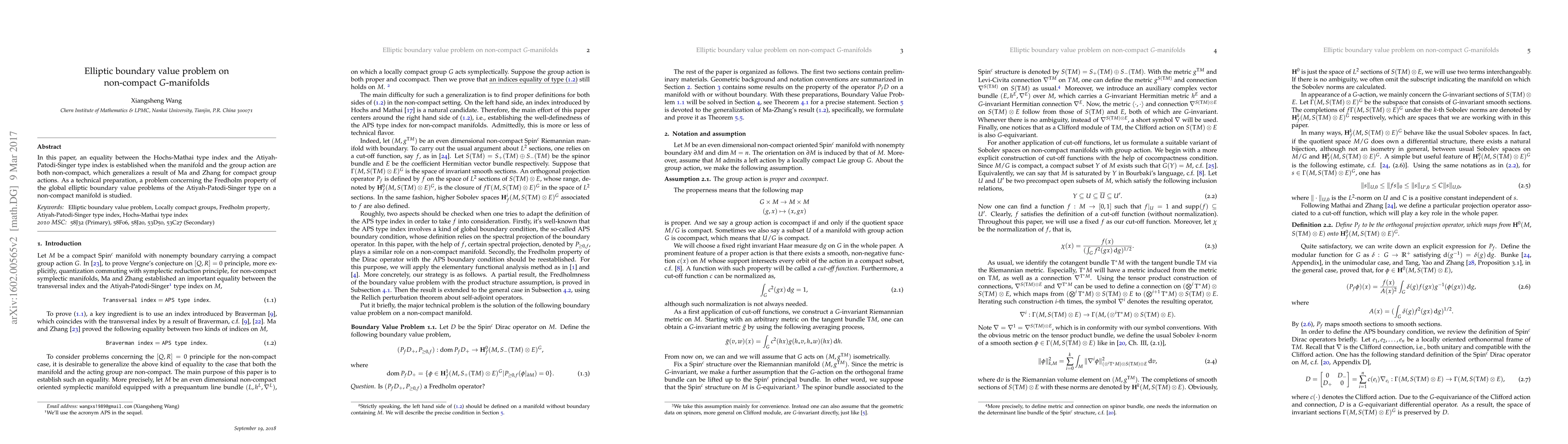 In this paper, an equality between the Hochs-Mathai type index and the Atiyah-Patodi-Singer type index is established when the manifold and the group action are both non-compact, which generalizes a result of Ma and Zhang for compact group actions. As a technical preparation, a problem concerning the Fredholm property of the global elliptic boundary value problems of the Atiyah-Patodi-Singer type on a non-compact manifold is studied.