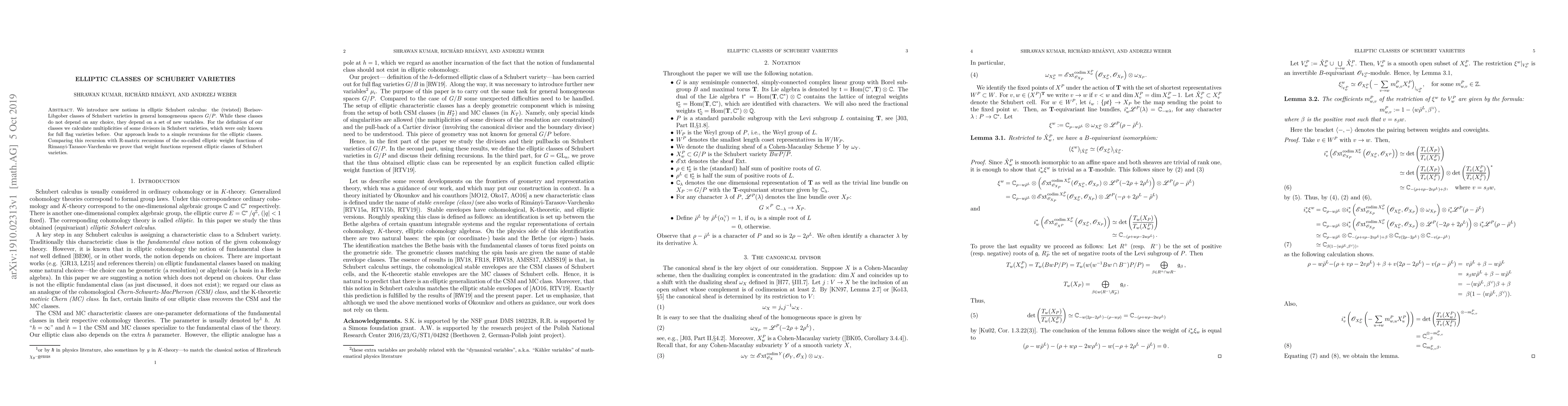We introduce new notions in elliptic Schubert calculus: the (twisted) Borisov-Libgober classes of Schubert varieties in general homogeneous spaces G/P. While these classes do not depend on any choice, they depend on a set of new variables. For the definition of our classes we calculate multiplicities of some divisors in Schubert varieties, which were only known for full flag varieties before. Our approach leads to a simple recursions for the elliptic classes. Comparing this recursion with R-matrix recursions of the so-called elliptic weight functions of Rimanyi-Tarasov-Varchenko we prove that weight functions represent elliptic classes of Schubert varieties.
