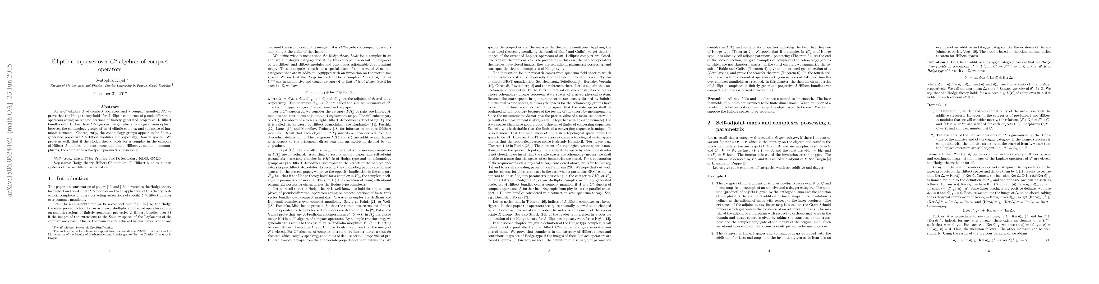This paper proves the validity of Hodge theory for $C^*$-algebras of compact operators acting on $A$-elliptic complexes of pseudodifferential operators over compact manifolds. It establishes a topological isomorphism between the cohomology groups of these complexes and the space of harmonic elements, confirming that the cohomology groups are Banach spaces.