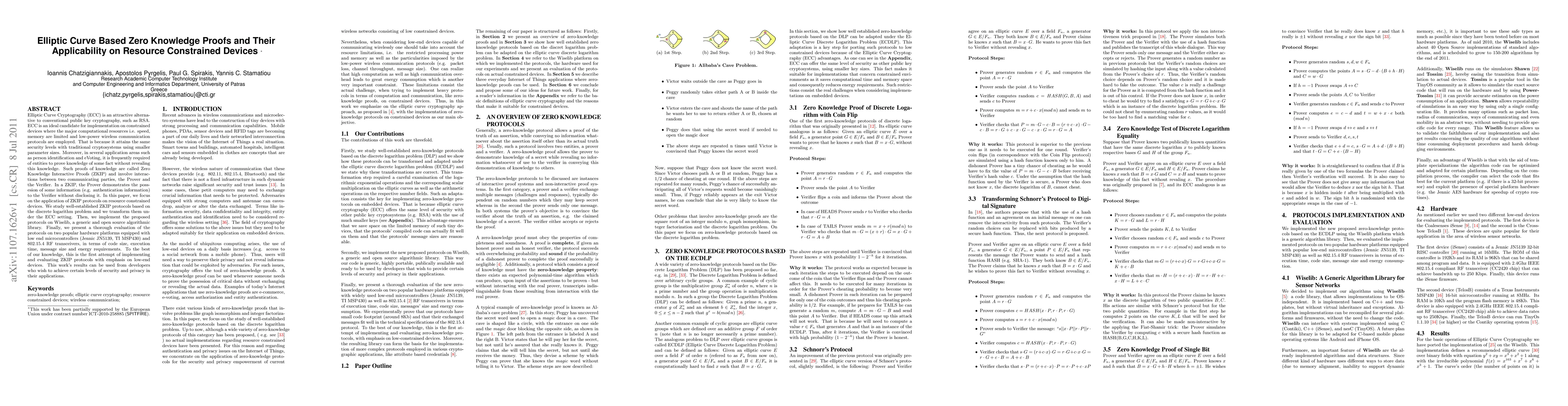 Elliptic Curve Cryptography (ECC) is an attractive alternative to conventional public key cryptography, such as RSA. ECC is an ideal candidate for implementation on constrained devices where the major computational resources i.e. speed, memory are limited and low-power wireless communication protocols are employed. That is because it attains the same security levels with traditional cryptosystems using smaller parameter sizes. Moreover, in several application areas such as person identification and eVoting, it is frequently required of entities to prove knowledge of some fact without revealing this knowledge. Such proofs of knowledge are called Zero Knowledge Interactive Proofs (ZKIP) and involve interactions between two communicating parties, the Prover and the Verifier. In a ZKIP, the Prover demonstrates the possesion of some information (e.g. authentication information) to the Verifier without disclosing it. In this paper, we focus on the application of ZKIP protocols on resource constrained devices. We study well-established ZKIP protocols based on the discrete logarithm problem and we transform them under the ECC setting. Then, we implement the proposed protocols on Wiselib, a generic and open source algorithmic library. Finally, we present a thorough evaluation of the protocols on two popular hardware platforms equipped with low end microcontrollers (Jennic JN5139, TI MSP430) and 802.15.4 RF transceivers, in terms of code size, execution time, message size and energy requirements. To the best of our knowledge, this is the first attempt of implementing and evaluating ZKIP protocols with emphasis on low-end devices. This work's results can be used from developers who wish to achieve certain levels of security and privacy in their applications.