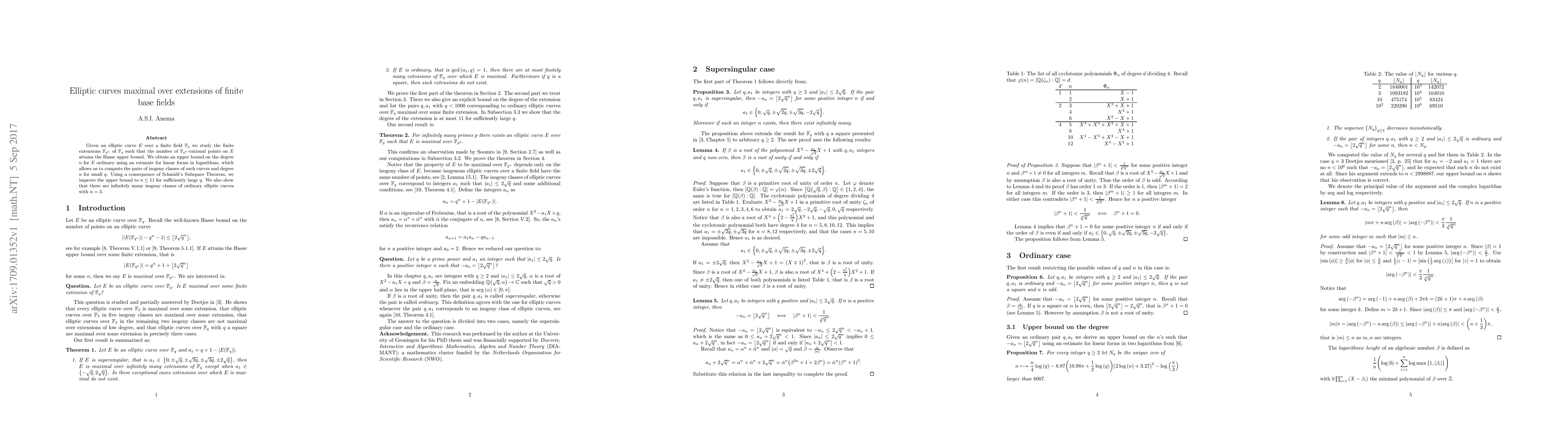 This paper studies elliptic curves over finite fields with a focus on rational points and isogeny classes, establishing an upper bound of n=11 for ordinary curves and showing infinite isogeny classes for certain cases.