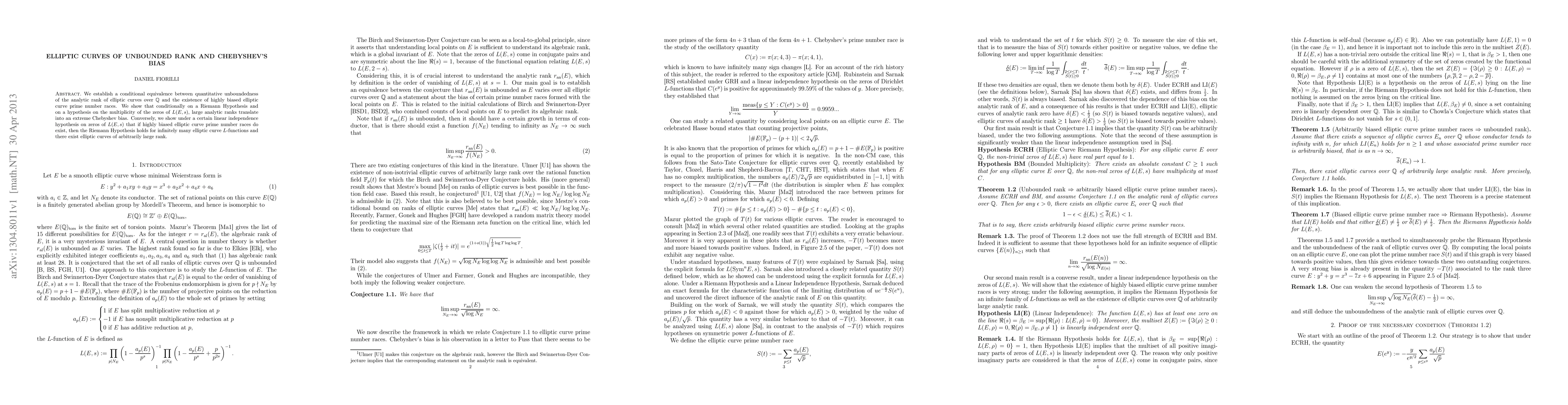This paper establishes a conditional link between the unbounded analytic rank of elliptic curves over $\mathbb Q$ and highly biased prime number races, showing that large analytic ranks imply extreme Chebyshev bias. Conversely, it suggests that the existence of such biased races implies the Riemann Hypothesis for infinitely many elliptic curve $L$-functions and the existence of elliptic curves of unbounded rank.