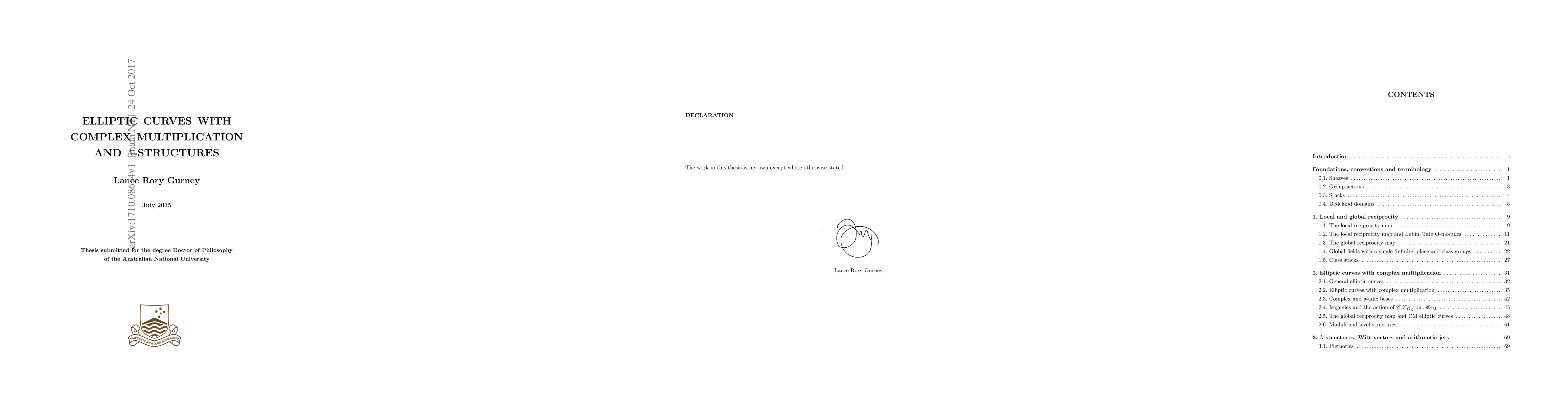 This thesis examines the relationship between elliptic curves with complex multiplication and Lambda structures. Our main result is to show that the moduli stack of elliptic curves with complex multiplication, and the universal elliptic curve with complex multiplication over it, both admit Lambda structures and that the structure morphism is a Lambda morphism. This implies that elliptic curves with complex multiplication can be canonically lifted to the Witt vectors of the base (these are big and global Witt vectors). We also show that elliptic curves with complex multiplication of Shimura type are precisely those admitting Lambda structures and that a large class of these elliptic curves admit global minimal models. Along the way, we present a detailed study of families of elliptic curves with complex multiplication over arbitrary bases, give new derivations of the reciprocity maps associated to local fields and imaginary quadratic fields, construct a new flat, affine and pro-smooth rigidification of the moduli stack of elliptic curves with complex multiplication and exhibit a relationship between perfect Lambda schemes and periods, both $p$-adic and analytic.