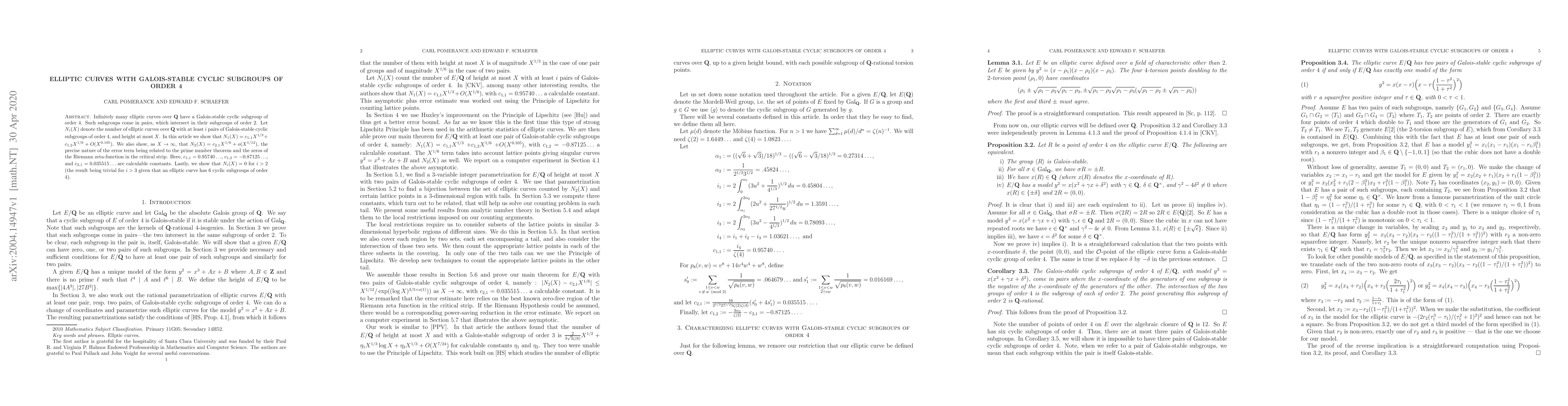 Infinitely many elliptic curves over ${\bf Q}$ have a Galois-stable cyclic subgroup of order 4. Such subgroups come in pairs, which intersect in their subgroups of order 2. Let $N_i(X)$ denote the number of elliptic curves over ${\bf Q}$ with at least $i$ pairs of Galois-stable cyclic subgroups of order 4, and height at most $X$. In this article we show that $N_1(X) = c_{1,1}X^{1/3}+c_{1,2}X^{1/6}+O(X^{0.105})$. We also show, as $X\to \infty$, that $N_2(X)=c_{2,1}X^{1/6}+o(X^{1/12})$, the precise nature of the error term being related to the prime number theorem and the zeros of the Riemann zeta-function in the critical strip. Here, $c_{1,1}= 0.95740\ldots$, $c_{1,2}=- 0.87125\ldots$, and $c_{2,1}= 0.035515\ldots$ are calculable constants. Lastly, we show that $N_i(X)=0$ for $i > 2$ (the result being trivial for $i>3$ given that an elliptic curve has 6 cyclic subgroups of order 4).