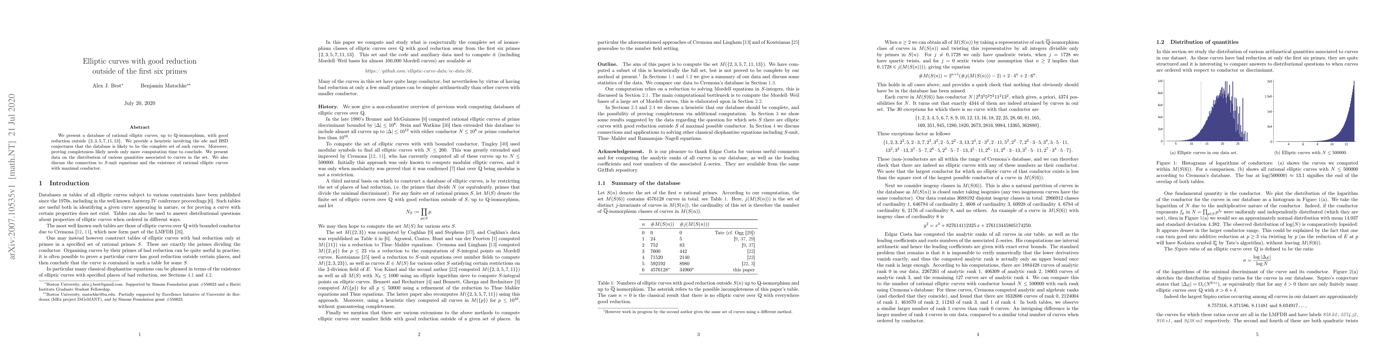 This paper introduces a database of rational elliptic curves with good reduction outside the primes {2,3,5,7,11,13} and uses heuristics based on the abc and BSD conjectures to argue its completeness. It also analyzes the distribution of curve quantities and discusses links to S-unit equations and maximal conductor elliptic curves.