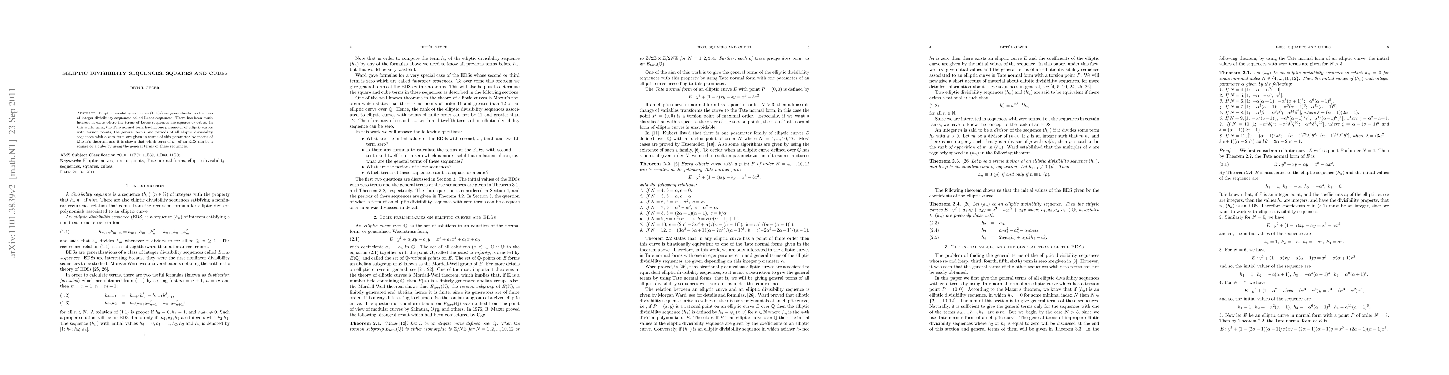 This paper generalizes Lucas sequences to elliptic divisibility sequences (EDSs) and determines the conditions under which terms of these sequences can be squares or cubes. Using the Tate normal form and Mazur's theorem, it provides a comprehensive analysis of the general terms and periods of EDSs with a zero term.