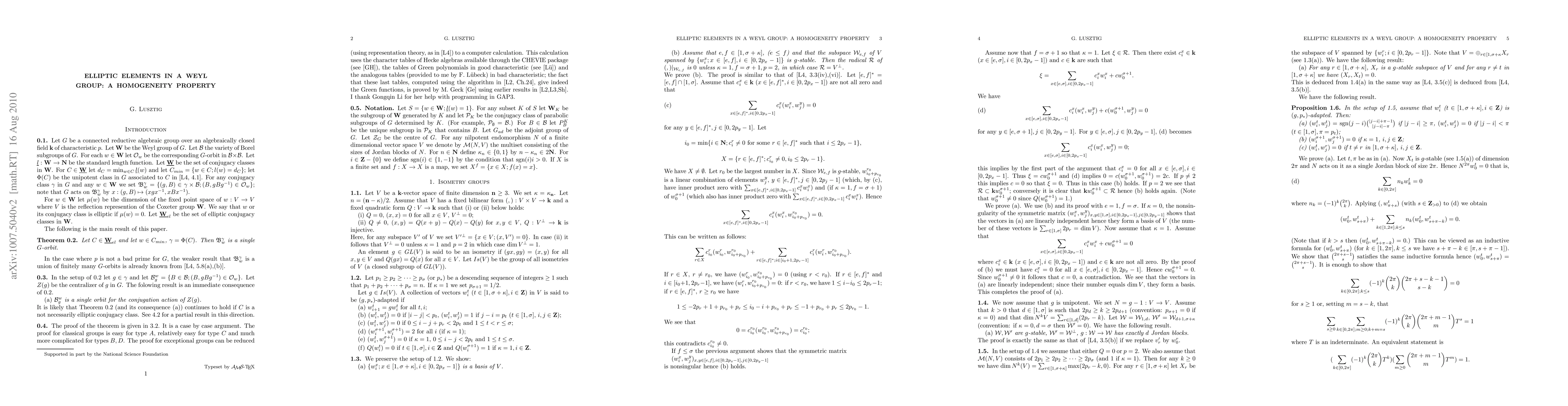 Let G be a reductive group over an algebraically closed field whose characteristic is not a bad prime for G. Let w be an elliptic element of the Weyl group which has minimal length in its conjugacy class. We show that there exists a unique unipotent class X in G such that the following holds: if V is the variety of pairs consisting of an element g in X and a Borel subgroup B such that B,gBg^{-1} are in relative position w, then V is a homogeneous G-space.