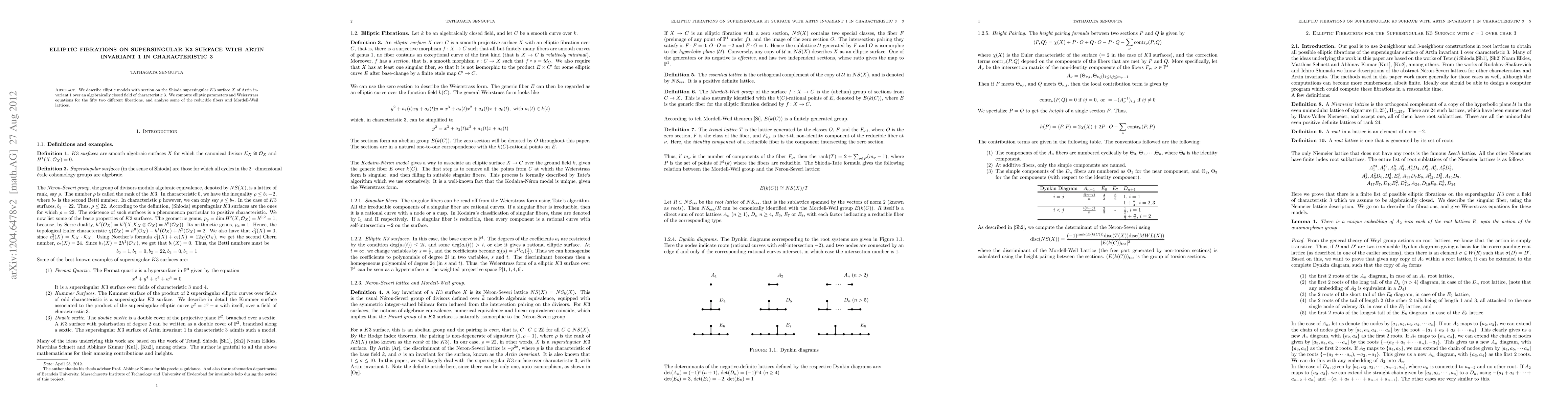 This paper details the elliptic fibrations on a Shioda supersingular K3 surface with Artin invariant 1 in characteristic 3, identifying fifty-two distinct fibrations, computing their Weierstrass equations, and analyzing their reducible fibers and Mordell-Weil lattices.