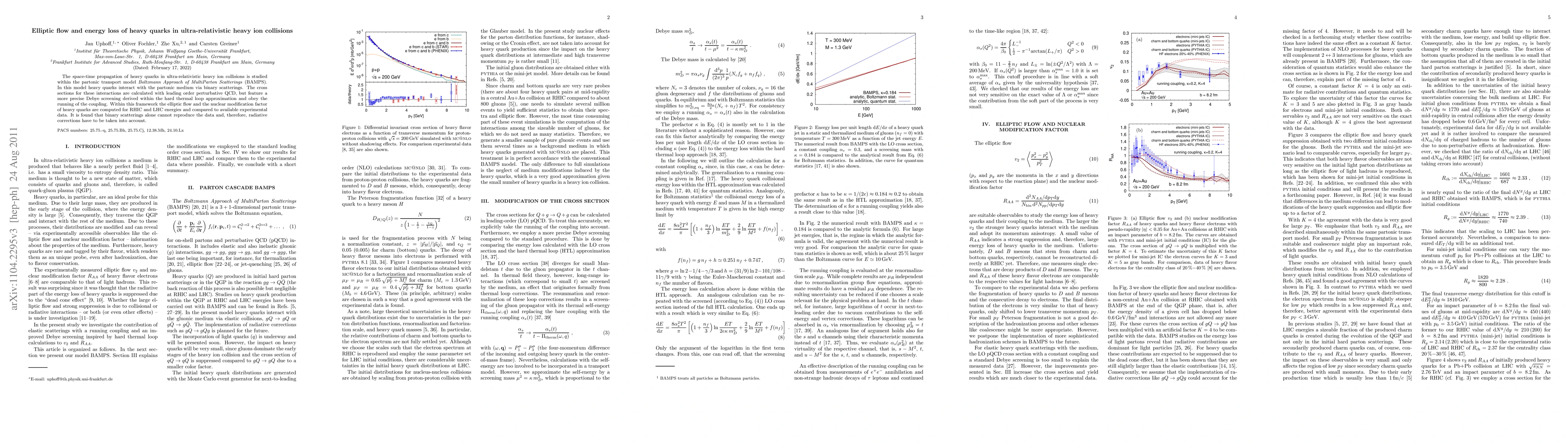 This paper investigates the behavior of heavy quarks in ultra-relativistic heavy ion collisions using the BAMPS transport model, finding that binary scatterings alone do not match experimental data, indicating the necessity of including radiative corrections to accurately describe elliptic flow and energy loss.