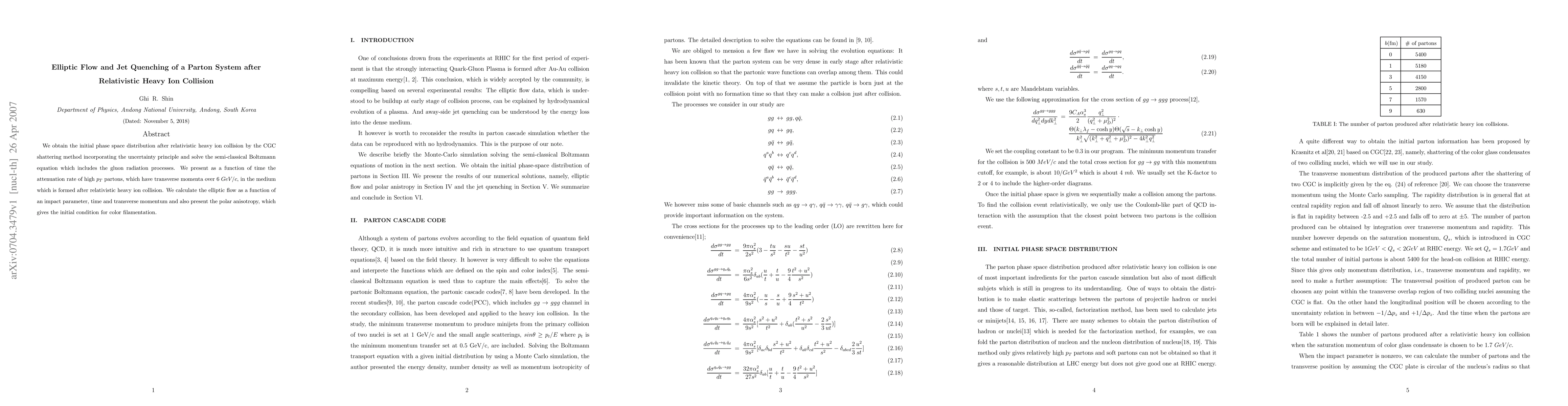 We obtain the initial phase space distribution after relativistic heavy ion collision by the CGC shattering method incorporating the uncertainty principle and solve the semi-classical Boltzmann equation which includes the gluon radiation processes. We present as a function of time the attenuation rate of high $p_T$ partons, which have transverse momenta over 6 $GeV/c$, in the medium which is formed after relativistic heavy ion collision. We calculate the elliptic flow as a function of an impact parameter, time and transverse momentum and also present the polar anisotropy, which gives the initial condition for color filamentation.