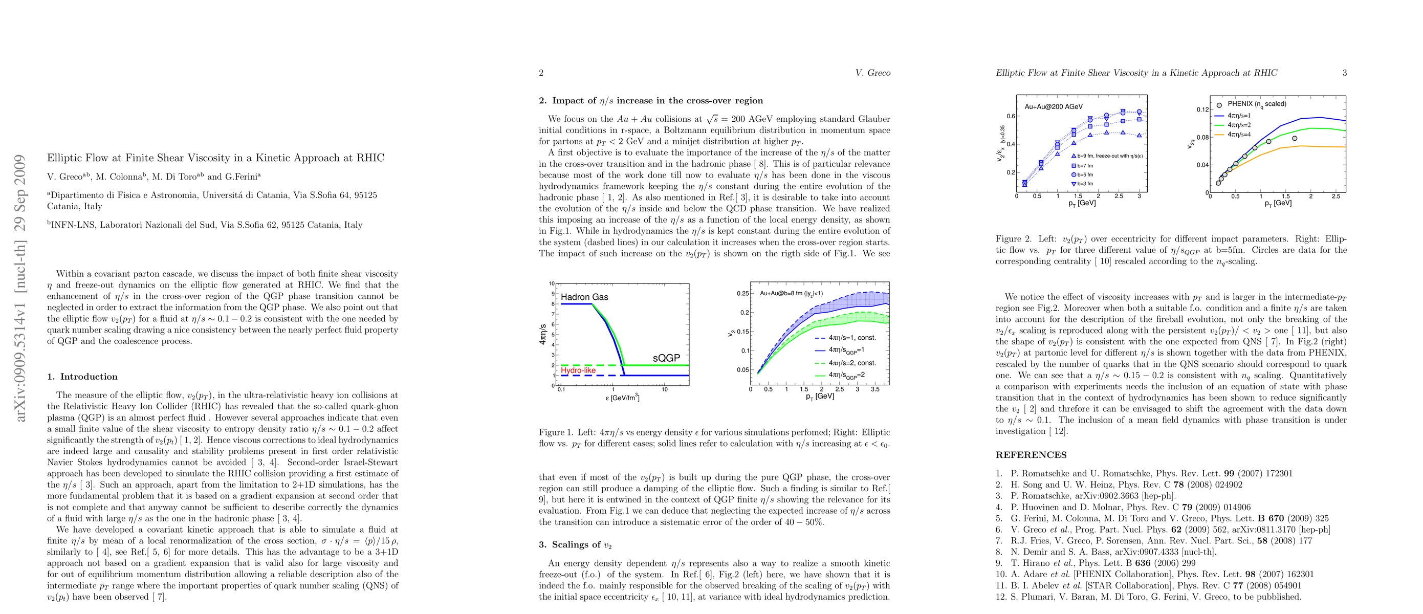 Within a covariant parton cascade, we discuss the impact of both finite shear viscosity $\eta$ and freeze-out dynamics on the elliptic flow generated at RHIC. We find that the enhancement of $\eta/s$ in the cross-over region of the QGP phase transition cannot be neglected in order to extract the information from the QGP phase. We also point out that the elliptic flow $v_2(p_T)$ for a fluid at $\eta/s \sim 0.1-0.2$ is consistent with the one needed by quark number scaling drawing a nice consistency between the nearly perfect fluid property of QGP and the coalescence process.