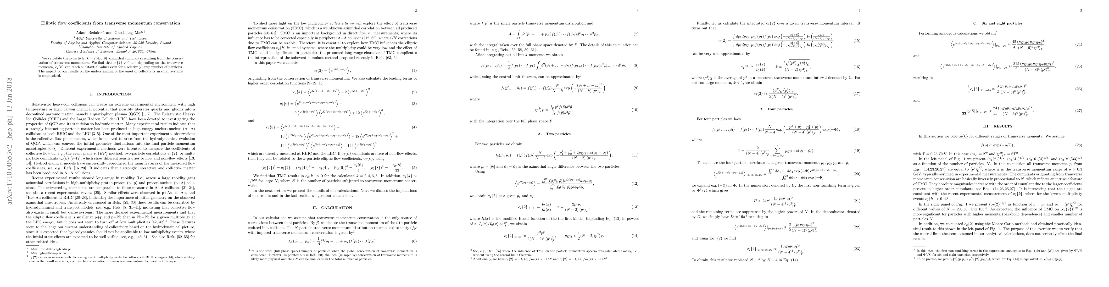 This paper calculates the elliptic flow coefficients from transverse momentum conservation for $k=2,4,6,8$ particles, finding that $c_2\{k\}$ can be substantially positive and significant, which impacts the understanding of collectivity onset in small systems.