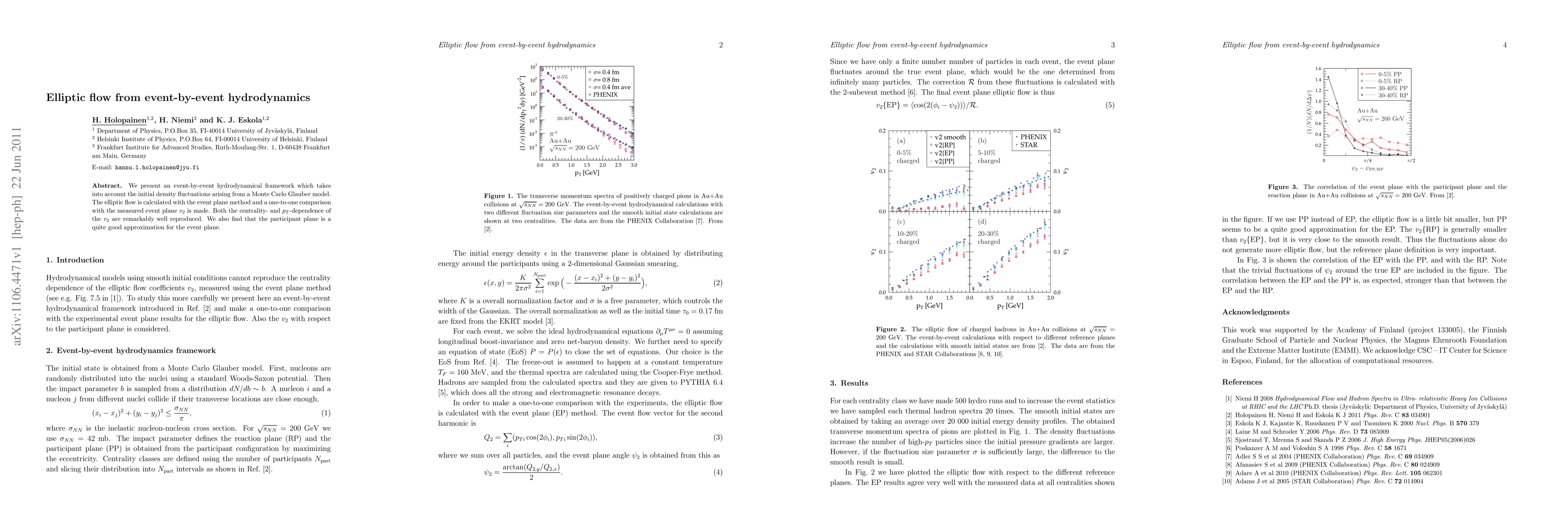 This paper develops an event-by-event hydrodynamic model incorporating initial density fluctuations from a Monte Carlo Glauber model, successfully reproducing the elliptic flow's centrality- and $p_T$-dependence using the event plane method, and finds that the participant plane closely approximates the event plane.