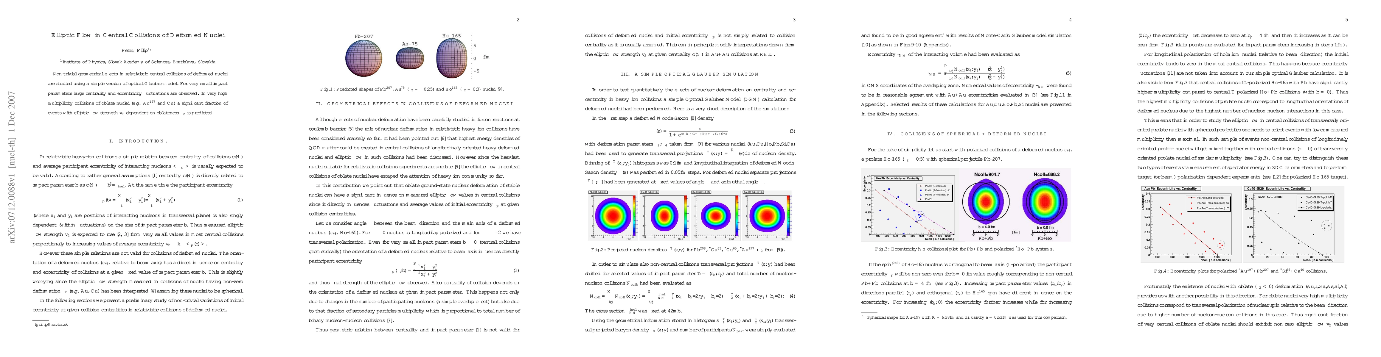 Researchers studied deformed nuclei collisions using a simplified optical Glauber model, predicting significant elliptic flow strength in high-multiplicity collisions that depend on the nucleus's oblateness.