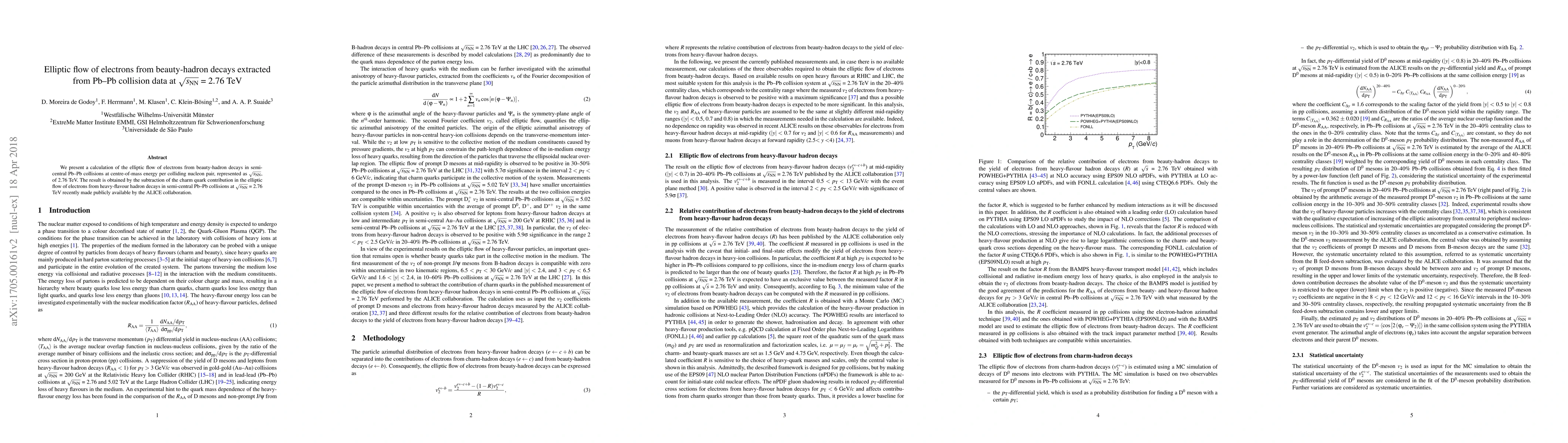 This paper calculates the elliptic flow of electrons originating from beauty-hadron decays in semi-central Pb-Pb collisions at 2.76 TeV by subtracting the charm quark contribution from the total elliptic flow of heavy-flavour electrons. The results are derived from data provided by the ALICE collaboration.