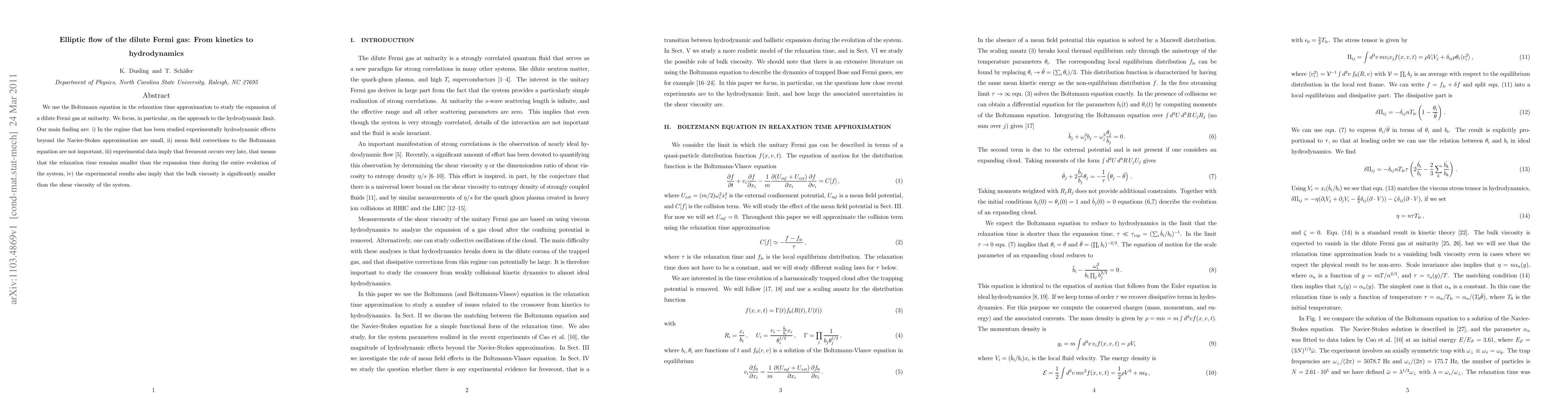 We use the Boltzmann equation in the relaxation time approximation to study the expansion of a dilute Fermi gas at unitarity. We focus, in particular, on the approach to the hydrodynamic limit. Our main finding are: i) In the regime that has been studied experimentally hydrodynamic effects beyond the Navier-Stokes approximation are small, ii) mean field corrections to the Boltzmann equation are not important, iii) experimental data imply that freezeout occurs very late, that means that the relaxation time remains smaller than the expansion time during the entire evolution of the system, iv) the experimental results also imply that the bulk viscosity is significantly smaller than the shear viscosity of the system.