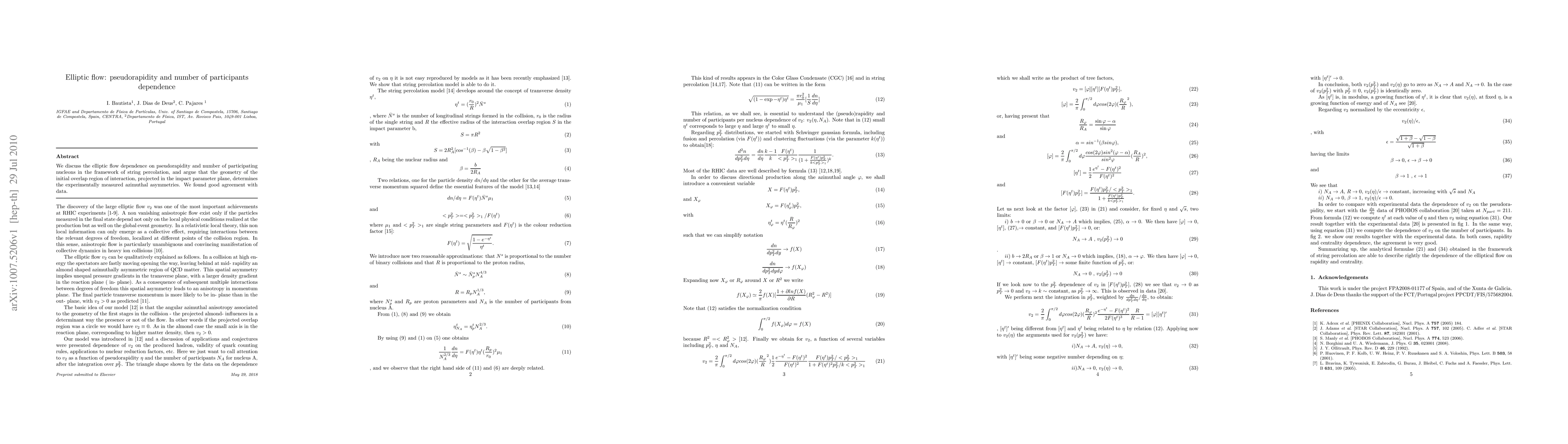 We discuss the elliptic flow dependence on pseudorapidity and number of participating nucleons in the framework of string percolation, and argue that the geometry of the initial overlap region of interaction, projected in the impact parameter plane, determines the experimentally measured azimuthal asymmetries. We found good agreement with data.