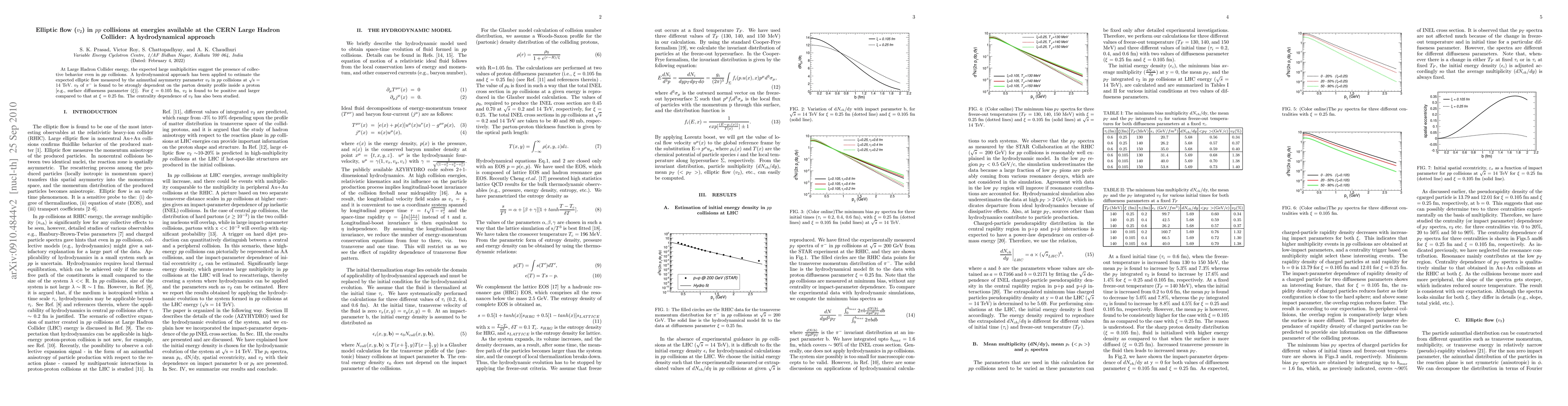 At Large Hadron Collider energy, the expected large multiplicities suggests the presence of collective behavior even in pp collisions. A hydrodynamical approach has been applied to estimate the expected elliptic flow measured by the azimuthal asymmetry parameter $v_2$, in pp collisions at $\surd$s = 14 TeV. $v_2$ of $\pi^-$ is found to be strongly dependent on the parton density profile inside a proton [e.g., surface diffuseness parameter ($\xi$)]. For $\xi$ = 0.105, $v_2$ is found to be positive while at $\xi$ = 0.25, $v_2$ is close to zero and approaches negative values at large $p_t$. The impact parameter dependence of $v_2$ has also been studied.