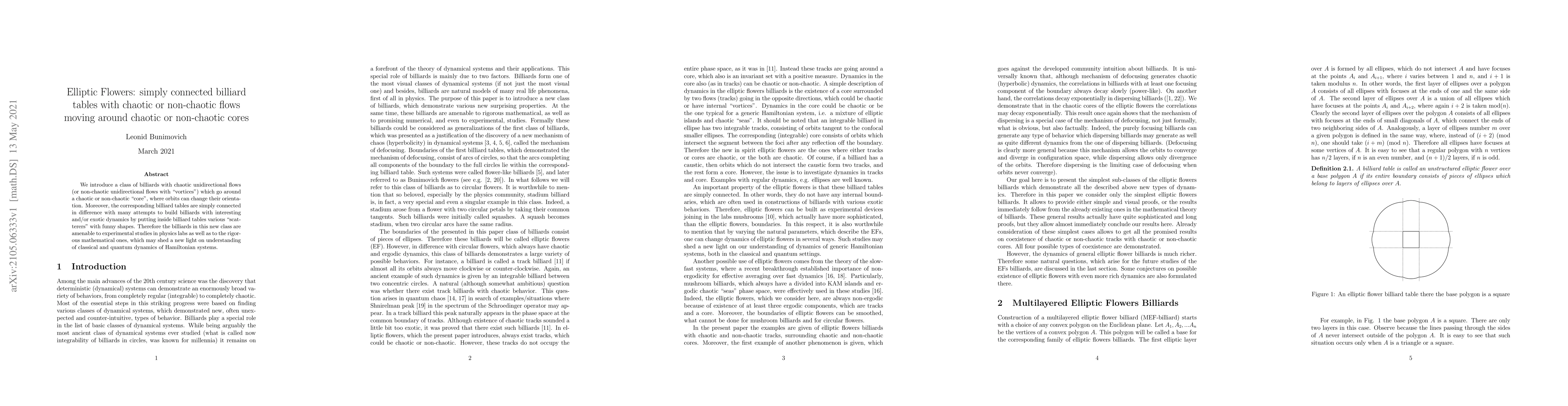 This paper introduces a novel class of simply connected billiard tables featuring chaotic or non-chaotic unidirectional flows around chaotic or non-chaotic cores, offering potential for both experimental physics and rigorous mathematical analysis to enhance understanding of Hamiltonian systems' dynamics.