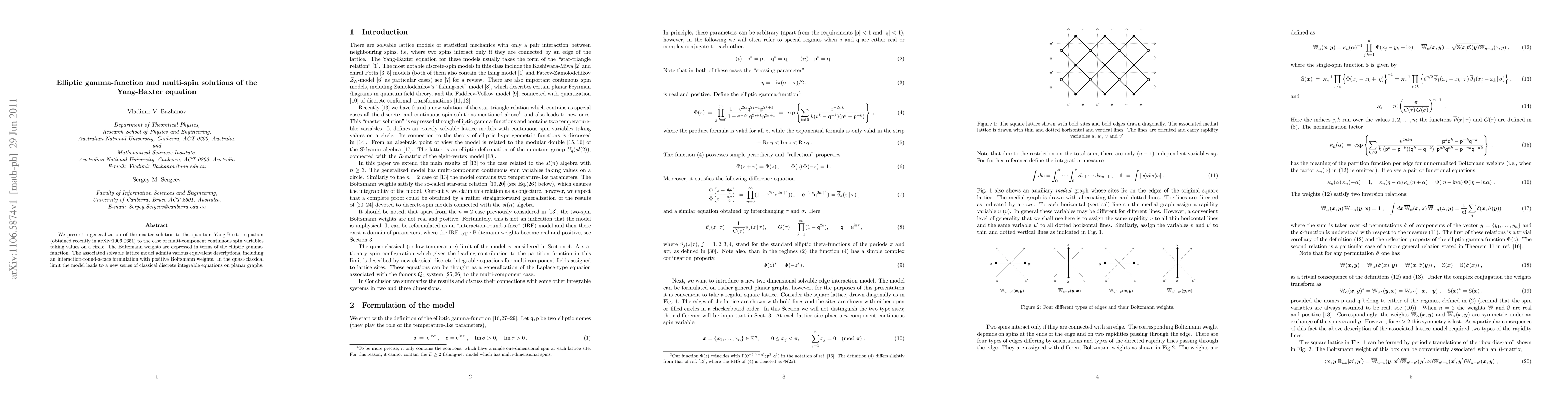 We present a generalization of the master solution to the quantum Yang-Baxter equation (obtained recently in arXiv:1006.0651) to the case of multi-component continuous spin variables taking values on a circle. The Boltzmann weights are expressed in terms of the elliptic gamma-function. The associated solvable lattice model admits various equivalent descriptions, including an interaction-round-a-face formulation with positive Boltzmann weights. In the quasi-classical limit the model leads to a new series of classical discrete integrable equations on planar graphs.