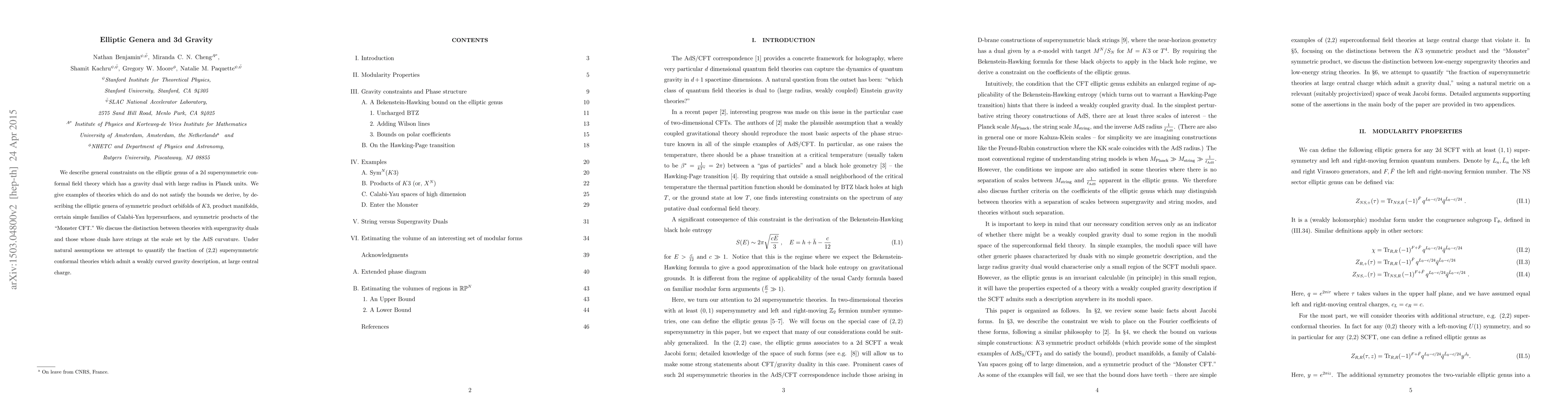 We describe general constraints on the elliptic genus of a 2d supersymmetric conformal field theory which has a gravity dual with large radius in Planck units. We give examples of theories which do and do not satisfy the bounds we derive, by describing the elliptic genera of symmetric product orbifolds of $K3$, product manifolds, certain simple families of Calabi-Yau hypersurfaces, and symmetric products of the "Monster CFT." We discuss the distinction between theories with supergravity duals and those whose duals have strings at the scale set by the AdS curvature. Under natural assumptions we attempt to quantify the fraction of (2,2) supersymmetric conformal theories which admit a weakly curved gravity description, at large central charge.